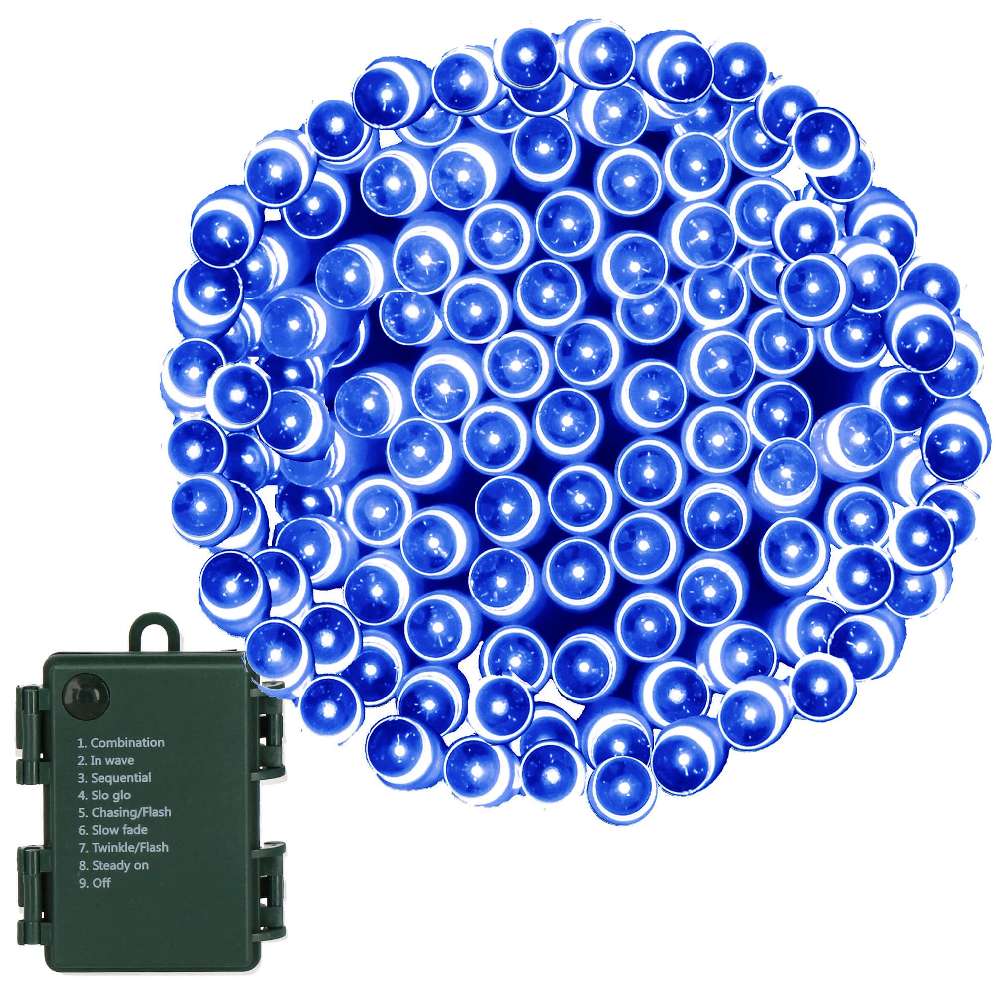 LED svetelná reťaz - 10m, 100LED, 8 funkcií, 3xAA, IP44, modrá