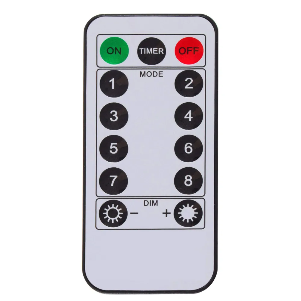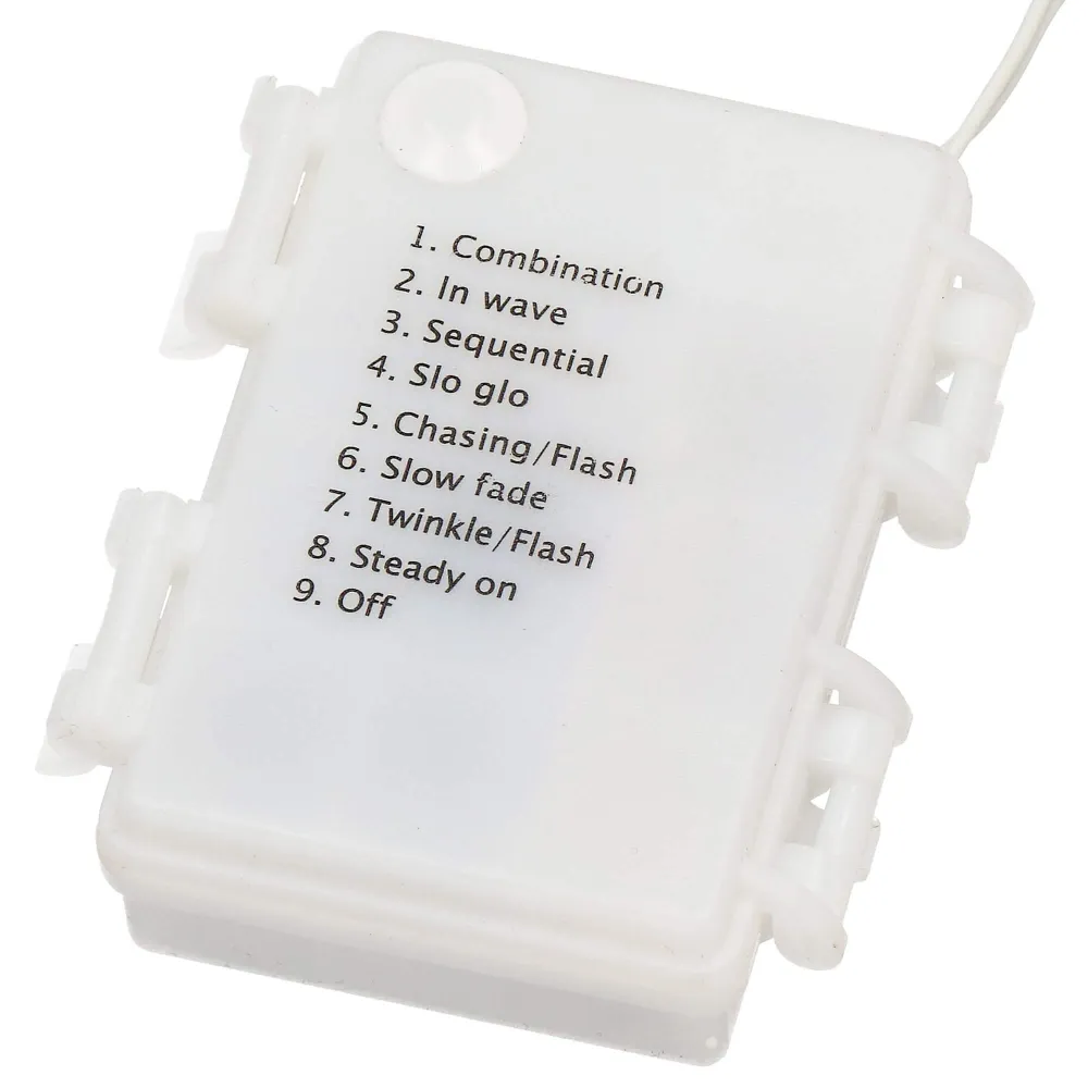 LED svetelná reťaz s 8 svetelnými funkciami a diaľkovým ovládaním. Napájaním na batérie, úsporné mikro diódy, vnútorné aj vonkajšie použitie. Vodeodolné prevedenie, krytie IP44. Dĺžka svetelnej časti 10 m, napájací kábel 50 cm. Farba teplá biela, 100 ľad, napájanie 3x AA batérie.