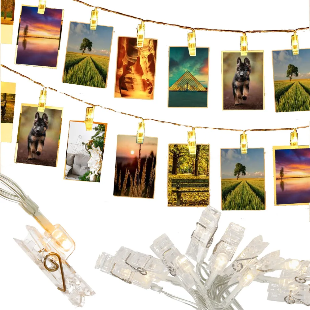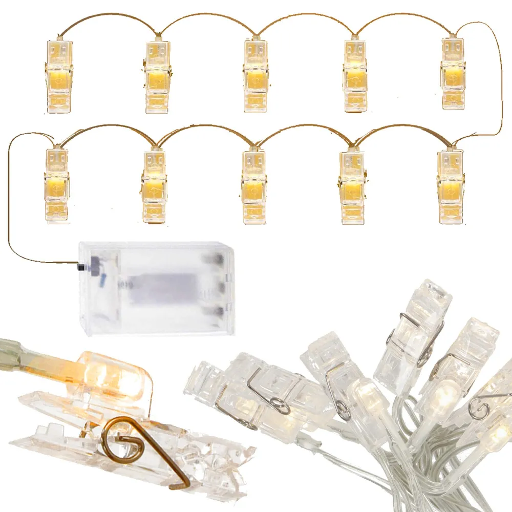 Svetelná reťaz s klipmi na pripnutie fotografií. Jemne presvieti okolie a vytvorí príjemnú atmosféru. Úsporné mikro diódy, vnútorné použitie, krytie IP20. Dĺžka svetelnej časti 2,5 m, napájací kábel 30 cm, dĺžka klipu 3,5 cm. Farba svetla teplá biela, 20 ľad, napájanie 3x AA batérie.