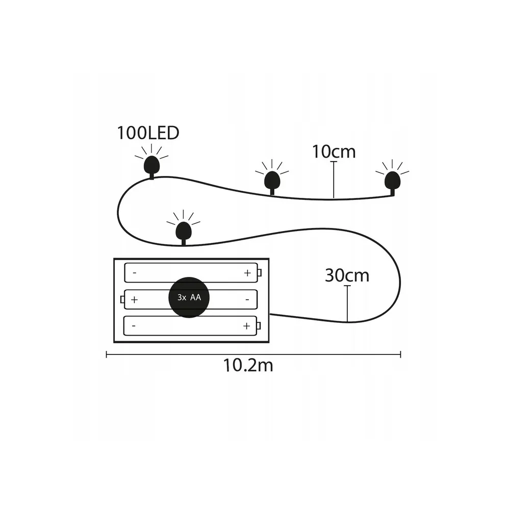Reťaz je vybavená veľmi úspornými led diódami. Batéria spoľahlivo vydrží desiatky hodín nepretržitého svietenia.