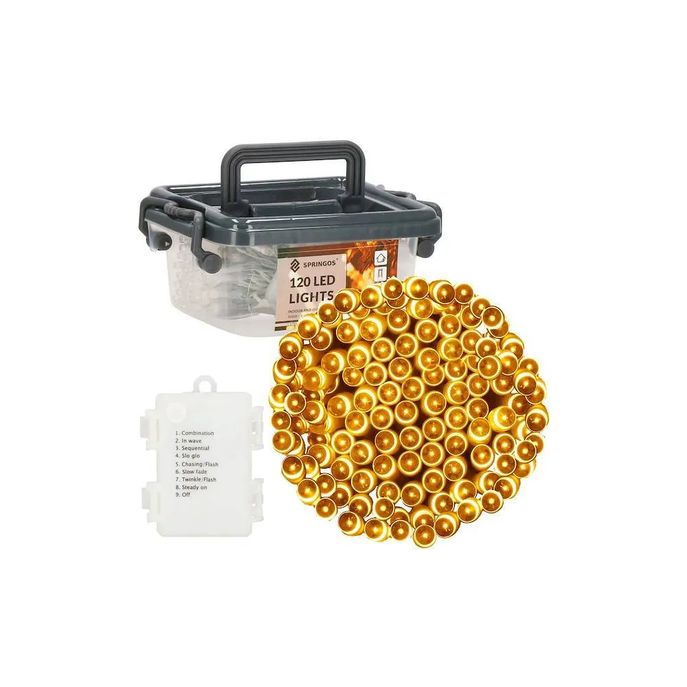 LED svetelná reťaz - 9m, 120LED, 8 funkcií, 3xAA, IP44, teplá biela