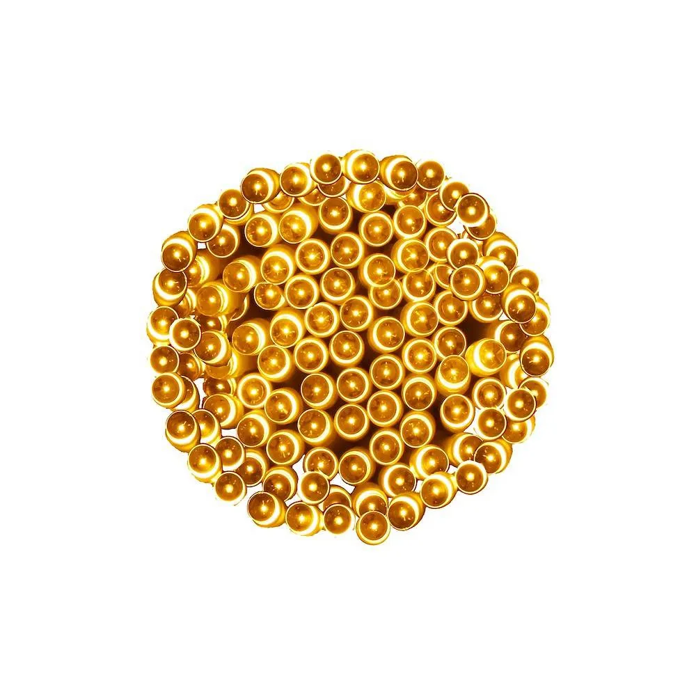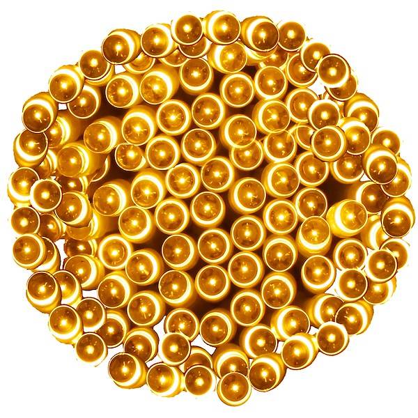 LED svetelná reťaz s 8 svetelnými funkciami a napájaním na batérie. Úsporné mikro diódy, vnútorné aj vonkajšie použitie. Vodeodolné prevedenie, krytie IP44. Dĺžka svetelnej časti 8,7 m, napájací kábel 30 cm. Farba teplá biela, 120 ľad, napájanie 3x AA batérie.