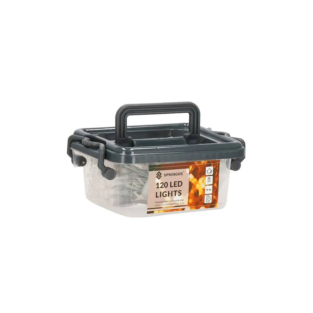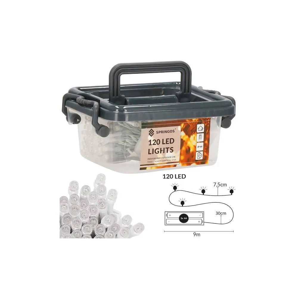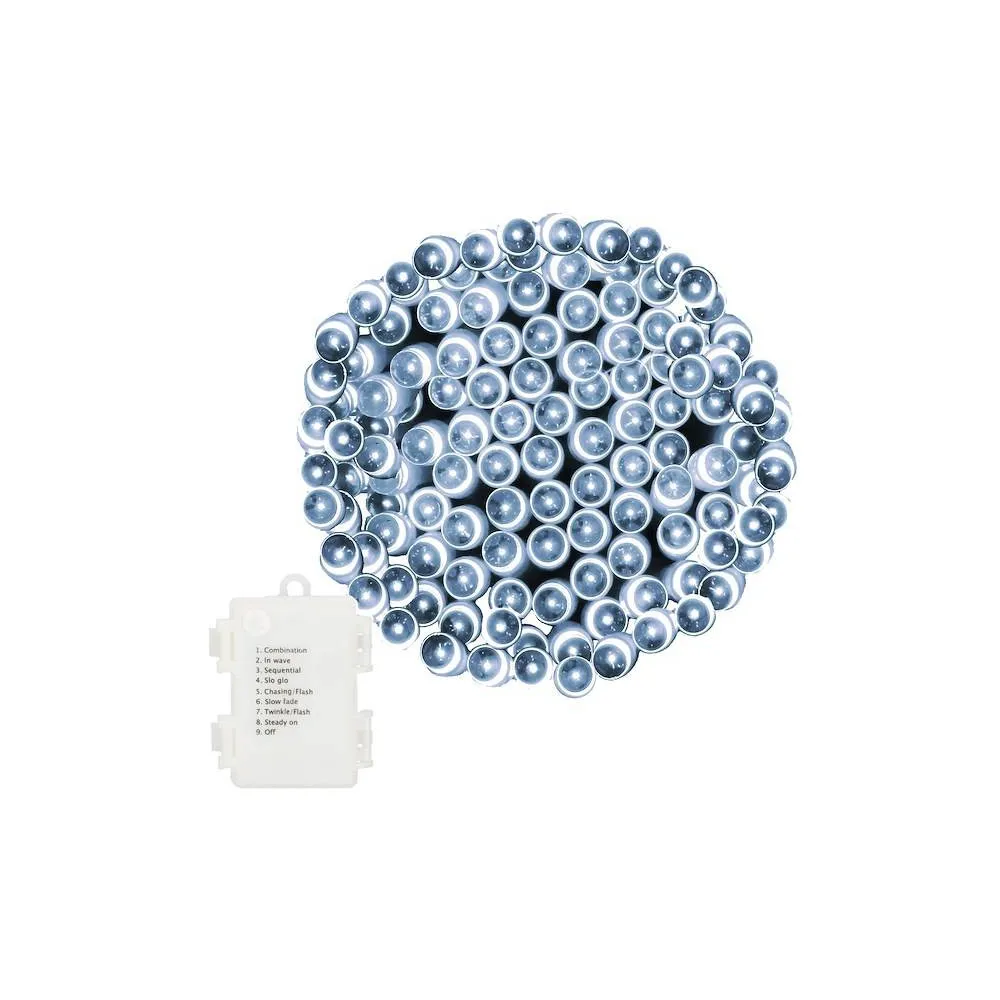 LED svetelná reťaz - 9m, 120LED, 8-funkcií, 3xAA, IP44, studená biela