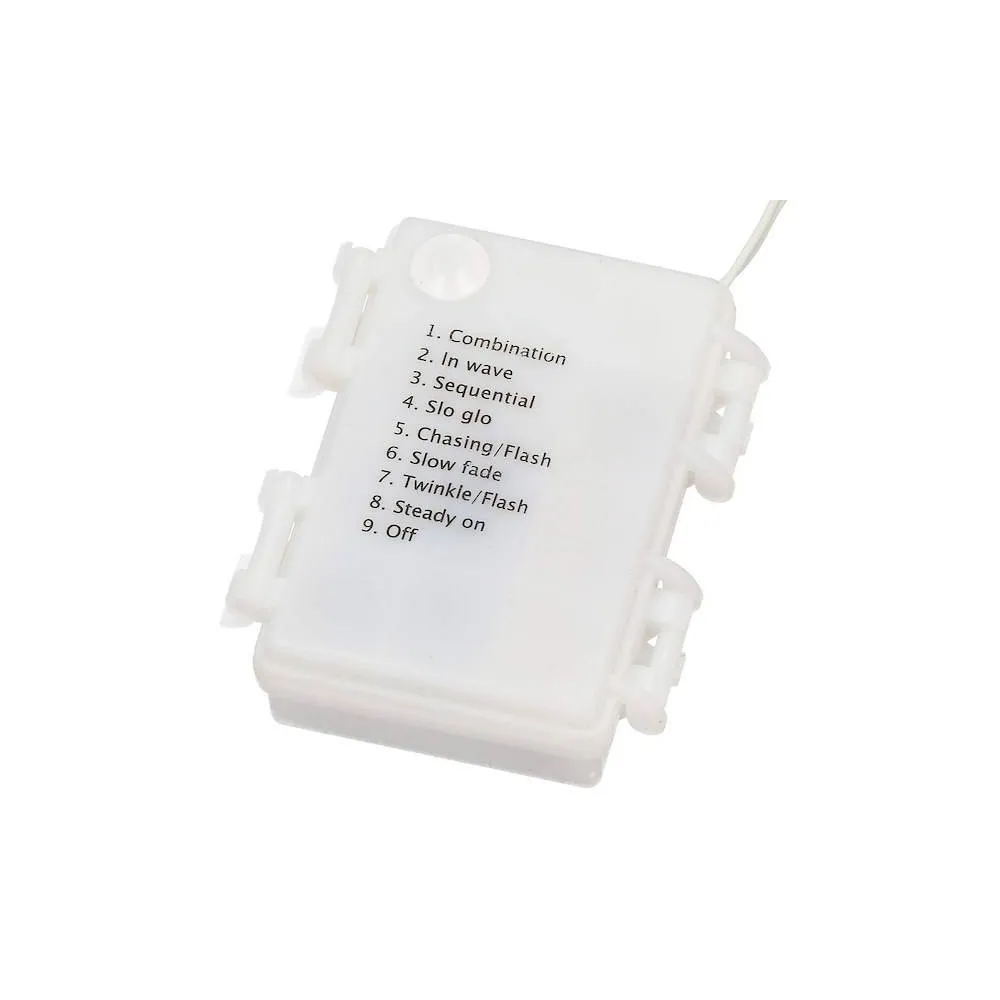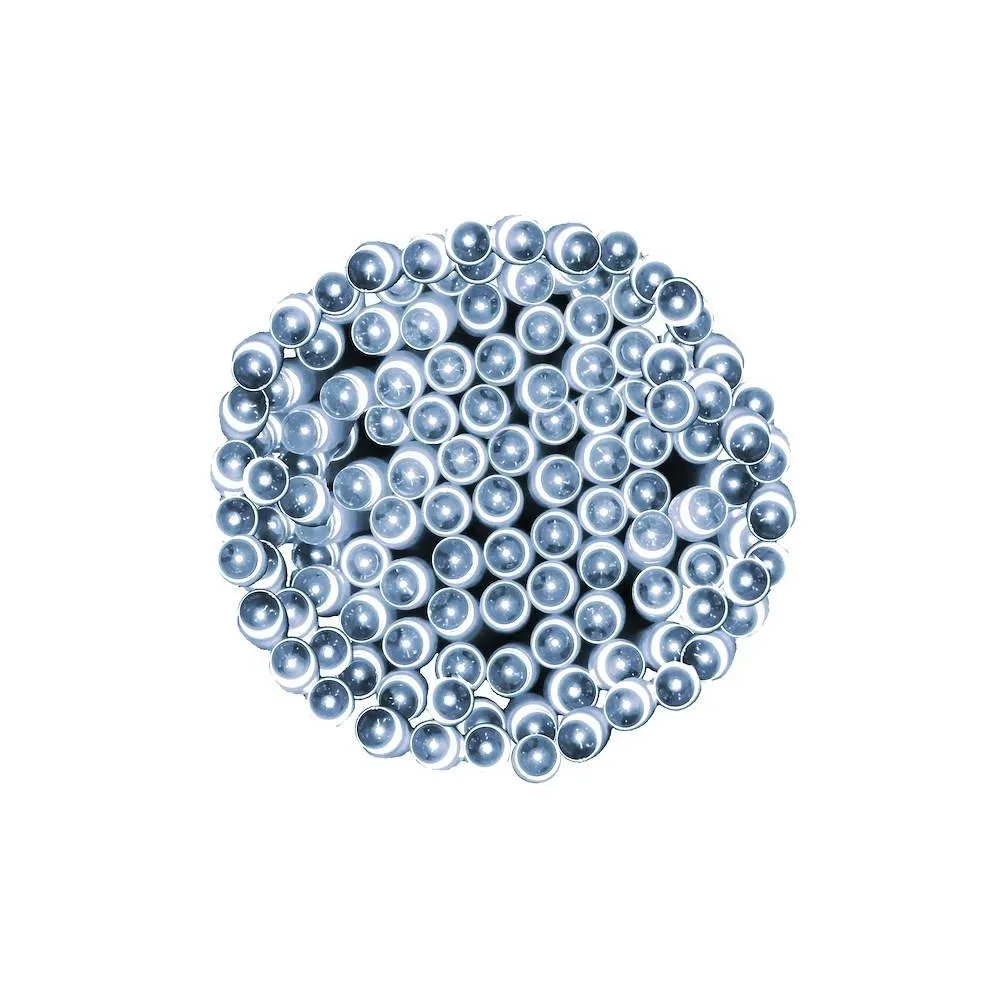 LED svetelná reťaz s 8 svetelnými funkciami a napájaním na batérie. Úsporné mikro diódy, vnútorné aj vonkajšie použitie. Vodeodolné prevedenie, krytie IP44. Dĺžka svetelnej časti 8,7 m, napájací kábel 30 cm. Farba studená biela, 120 ľad, napájanie 3x AA batérie.