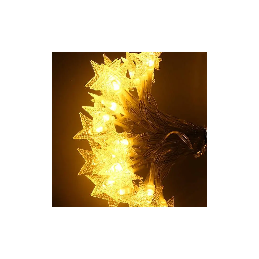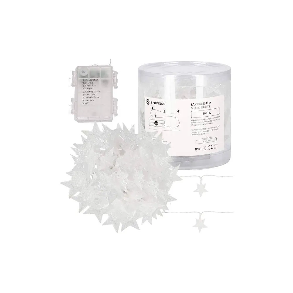 LED reťaz Hviezdy - 5m, 50LED, 8 funkcií, 3xAA, IP44, teplá biela