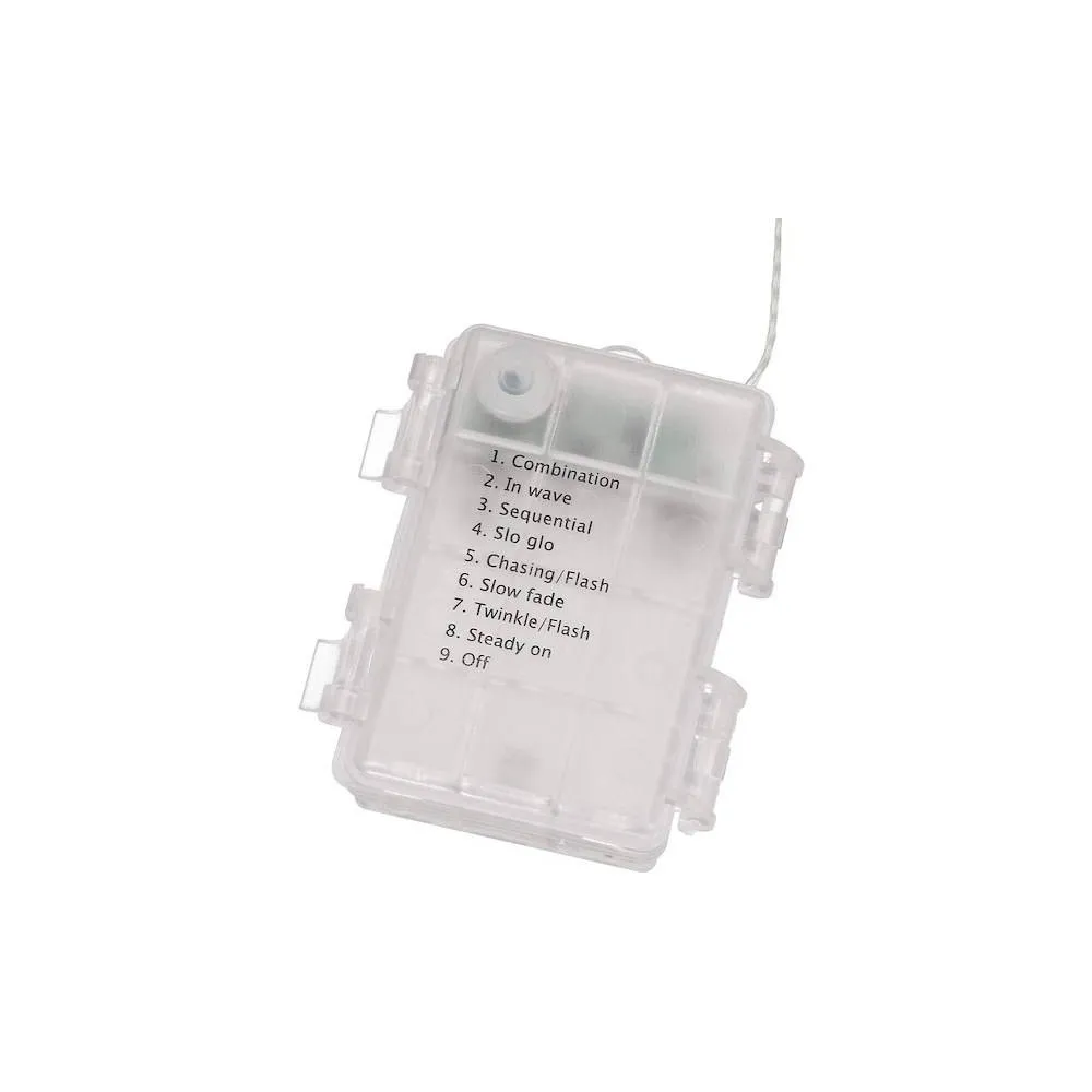 LED svetelná reťaz - 10m, 100LED, 8 funkcií, ovládač, 3xAA, IP44, studená biela