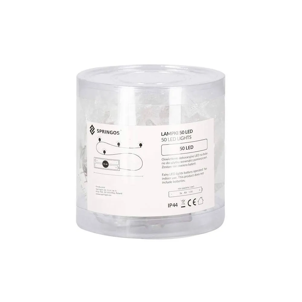 LED svetelná reťaz - 5m, 50LED, 8 funkcií, 3xAA, IP44, studená biela