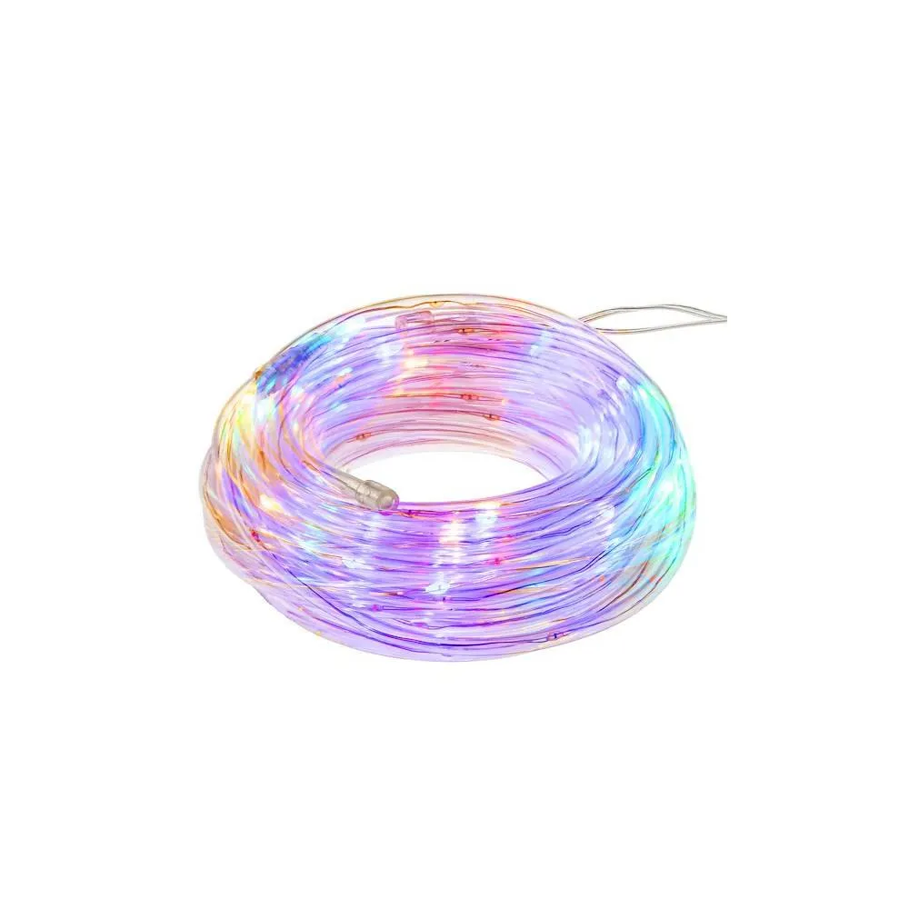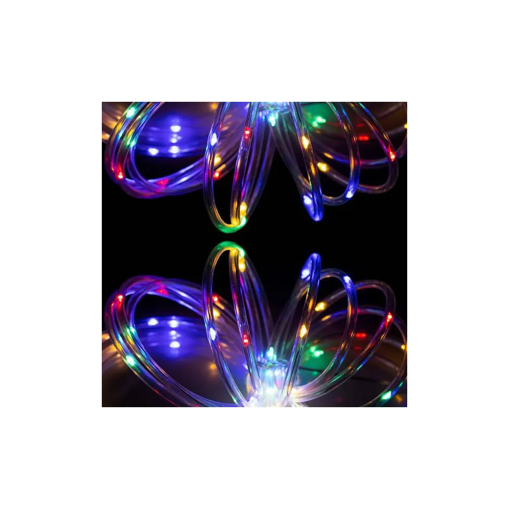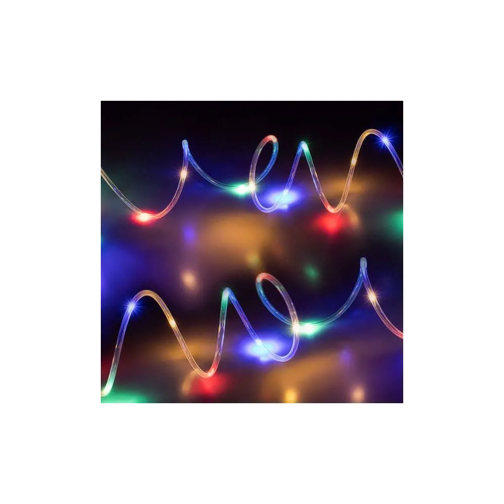 Svetelná hadica s programátorom, 8 svetelnými funkciami a napájaním na batérie. Ultra tenká a veľmi dobre tvarovateľná. Úsporné diódy, vnútorné aj vonkajšie použitie. Vodeodolné prevedenie, krytie IP44. Dĺžka svetelnej časti 5 m, napájací kábel 70 cm. Farba svetla multicolor, 50 ľad, napájanie 3x AA batérie.