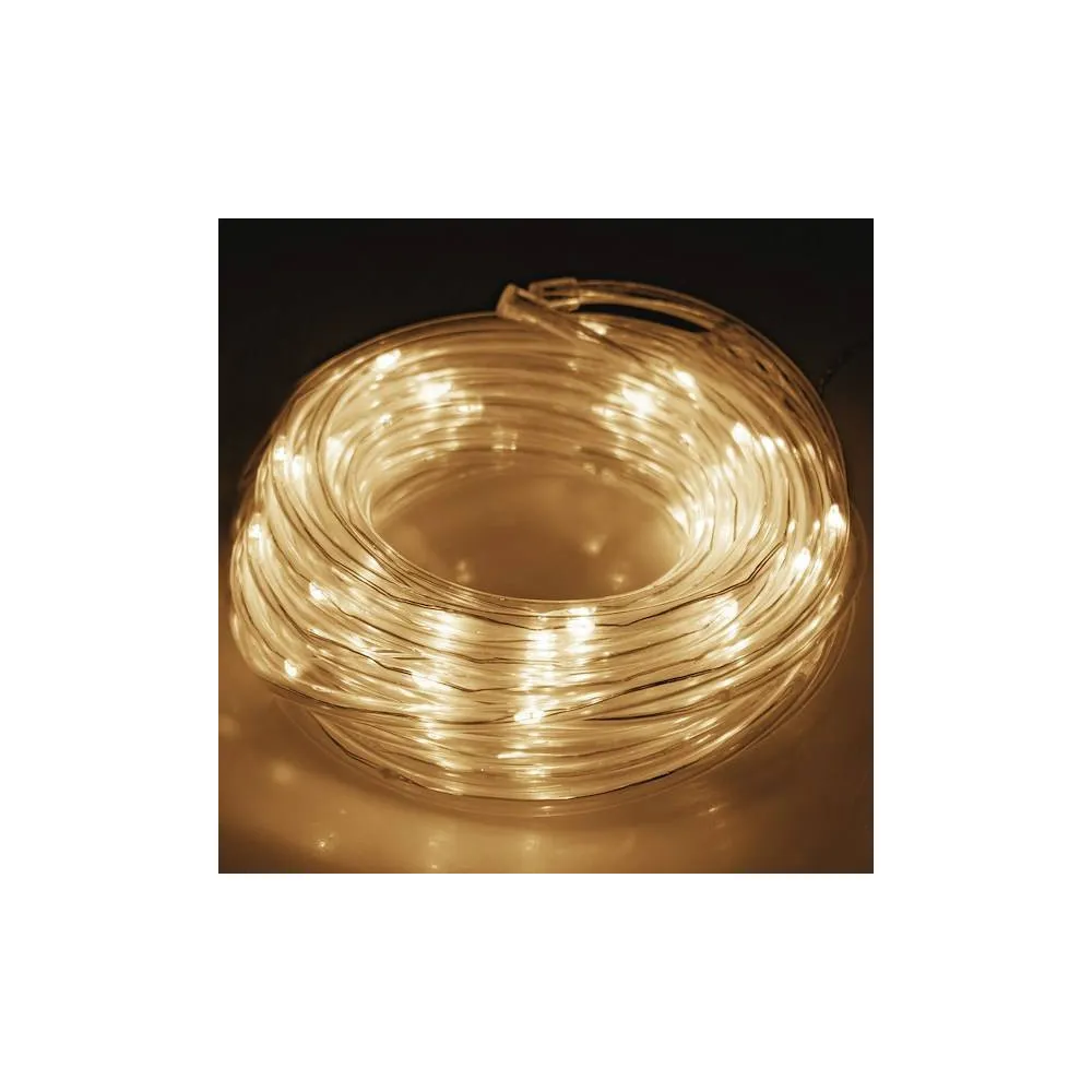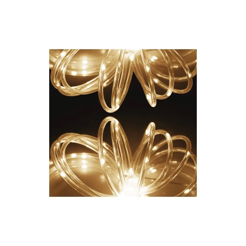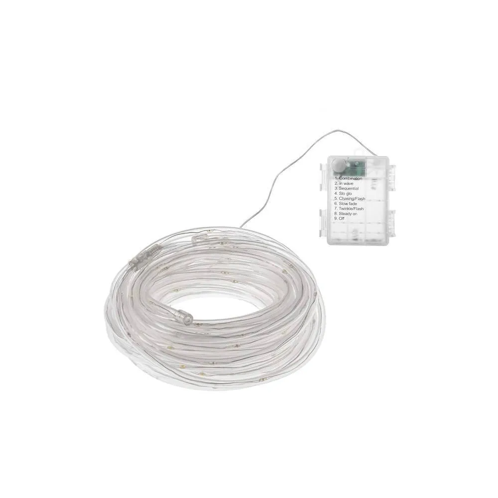 Svetelná hadica s programátorom, 8 svetelnými funkciami a napájaním na batérie. Ultra tenká a veľmi dobre tvarovateľná. Úsporné diódy, vnútorné aj vonkajšie použitie. Vodeodolné prevedenie, krytie IP44. Dĺžka svetelnej časti 5 m, napájací kábel 70 cm. Farba svetla teplá biela, 50 ľad, napájanie 3x AA batérie.