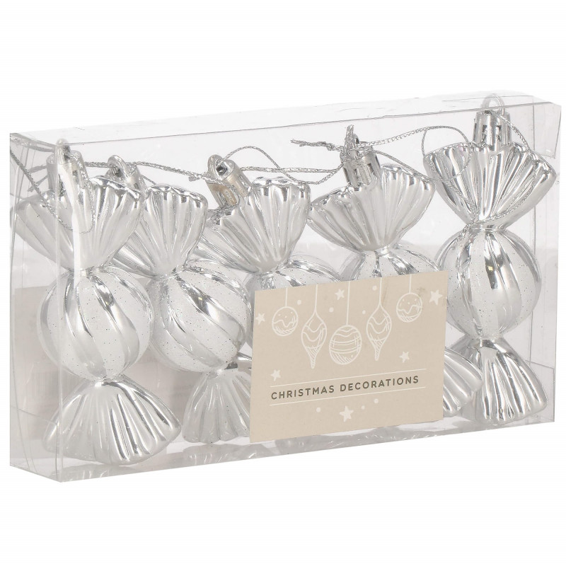 Vianočné ozdoby Strieborné cukríky - 6 cm, súprava 5ks