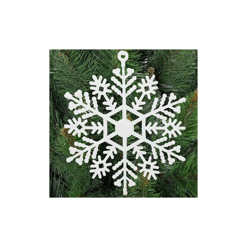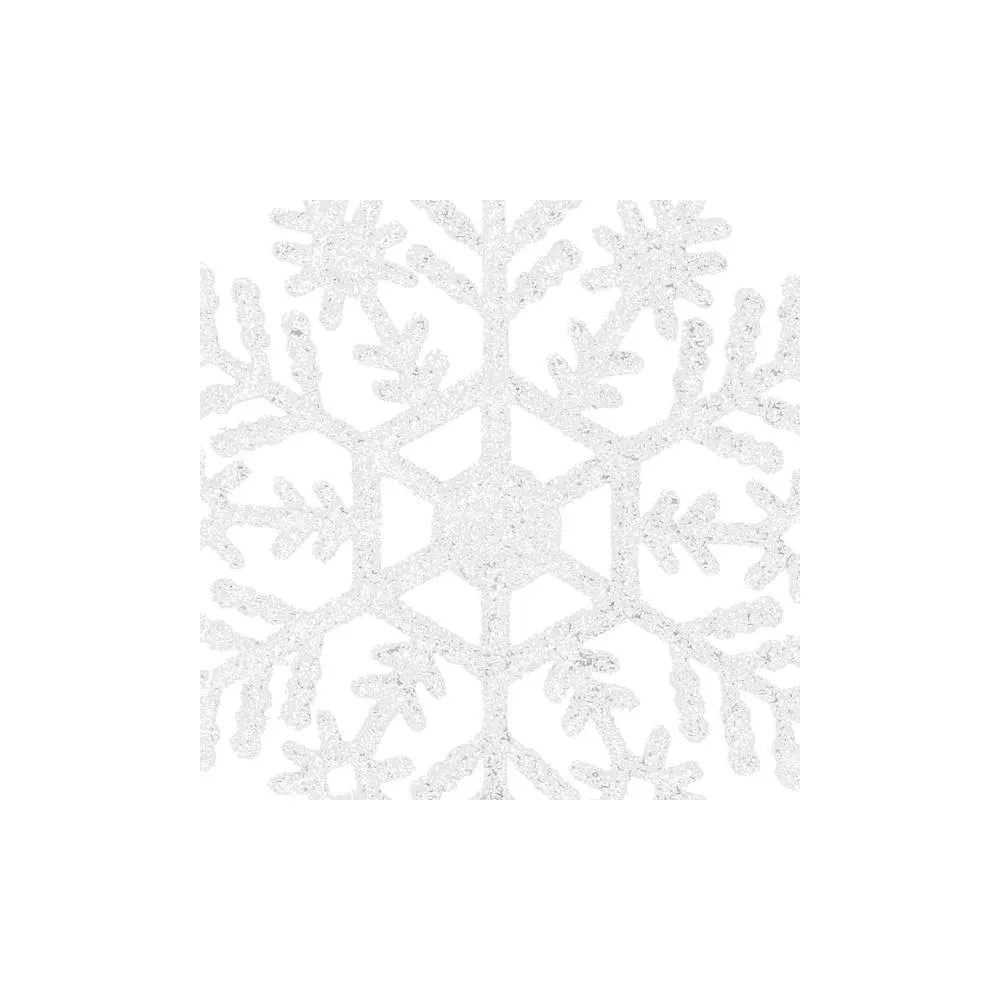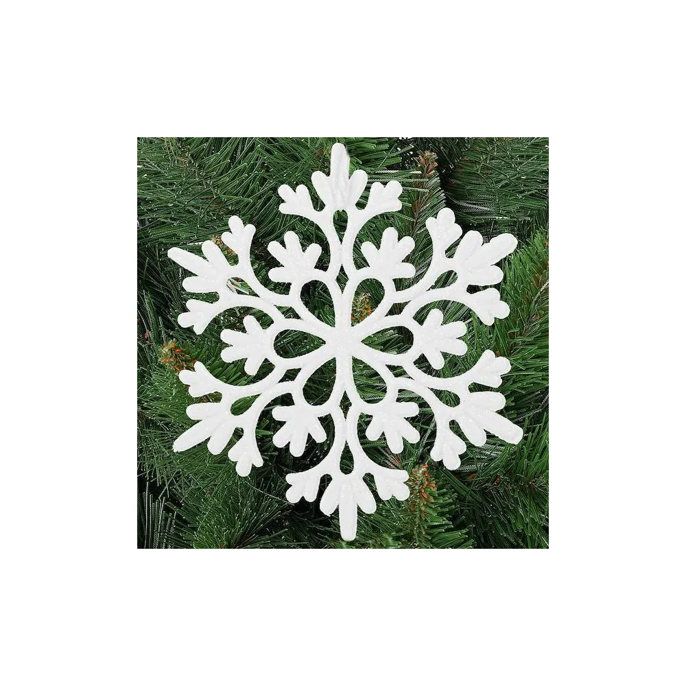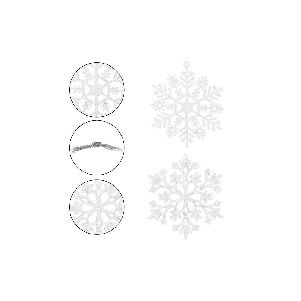 Súprava ôsmich kusov snehových vločiek so špagátom na zavesenie. Výška 8 cm, dva vzory vločiek, blýskavý povrch s trblietkami, nerozbitný plastový materiál, snehovo biela farba. Ideálne na výzdobu stromčekov alebo ako vianočné dekorácie.
