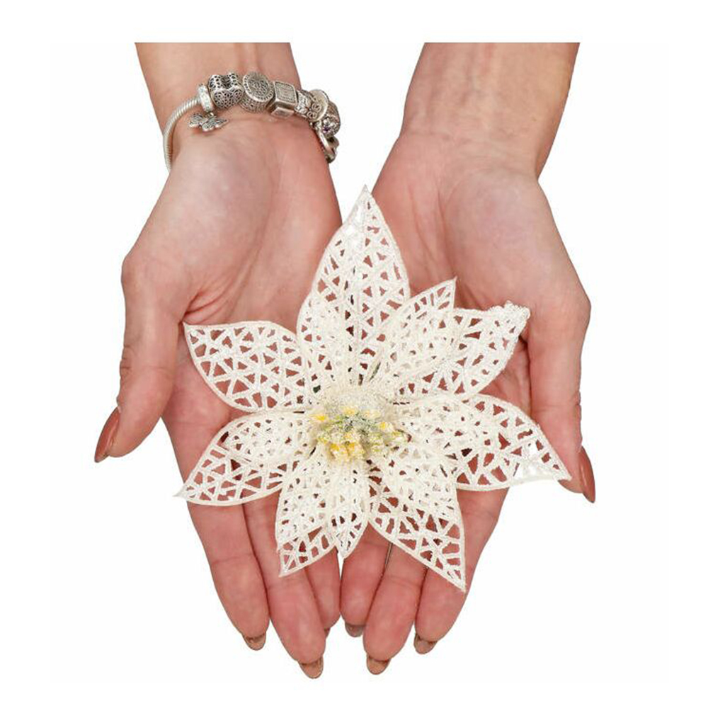 Vianočné ozdoby - Snehové vločky s trblietkami 12cm, strieborné, sada 3ks