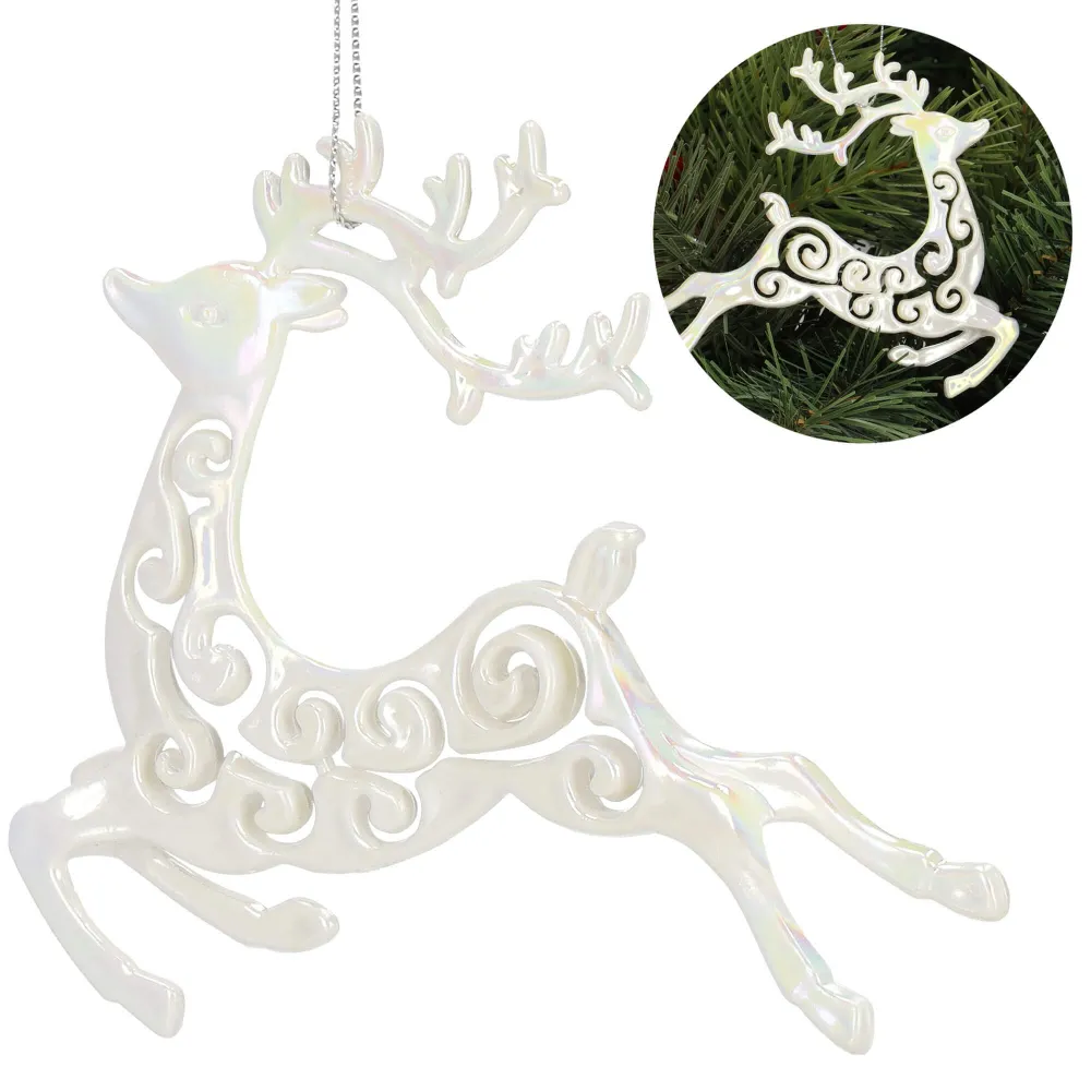 Elegantná vianočná ozdoba na stromček s motívom soba , vyrobená z plastu, zaujme svojimi jemnými detailmi . Tento kúsok v sebe spája pôvab prírody a sviatočnú atmosféru a môže byť použitý aj ako samostatná dekorácia pre vytvorenie kúzelného vianočného prostredia .