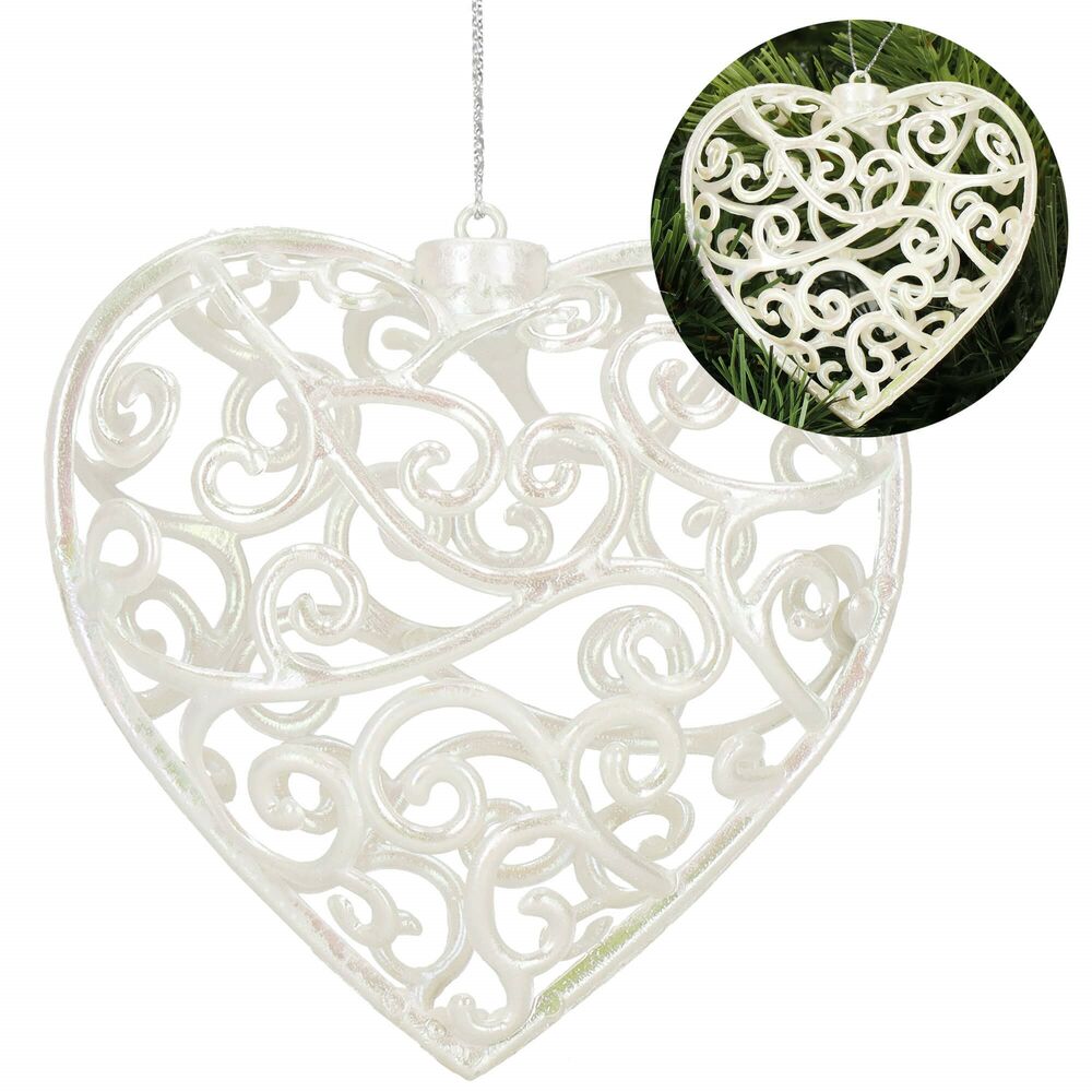 Srdiečko s ornamentmi 9cm biela perleť, vianočná ozdoba