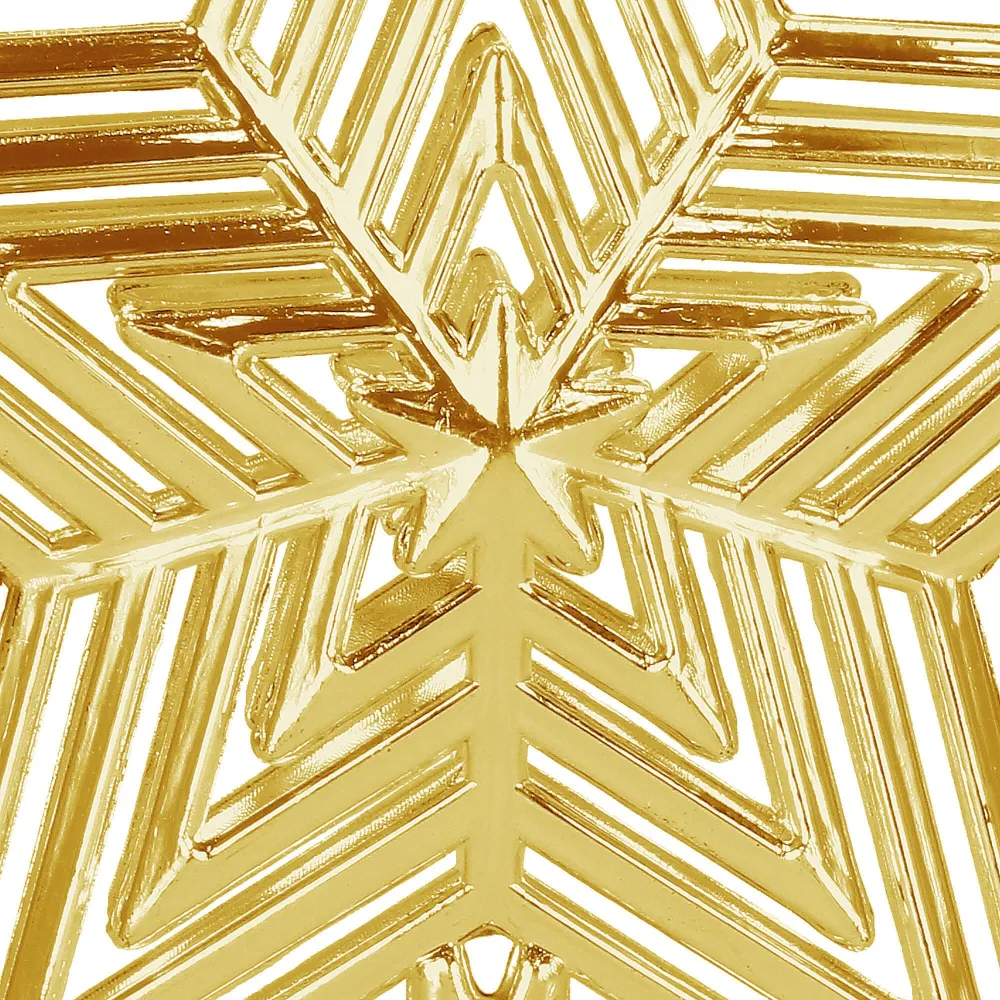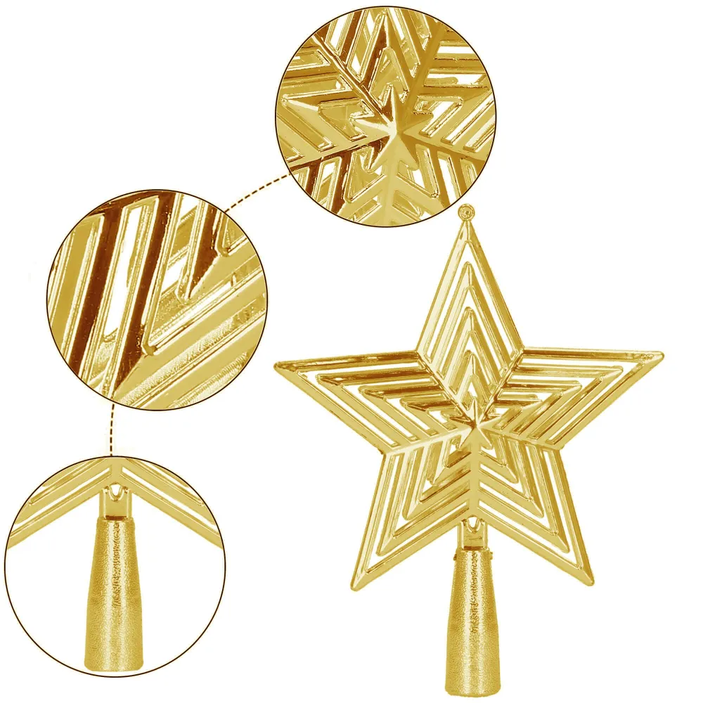 Prekrásna hviezda na špičku vianočného stromčeka. Bohato zdobená a prelamovaná pre jedinečné kúzlo a lesk každého stromčeka. Výška 18,5 cm, nerozbitný materiál, farba zlatá. Nádherná ozdoba vianočného stromčeka na navodenie príjemnej sviatočnej atmosféry.