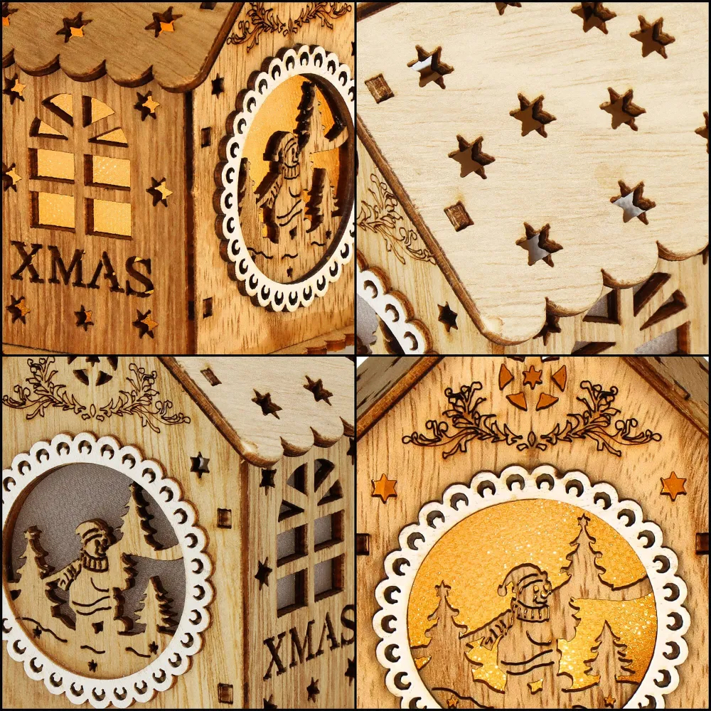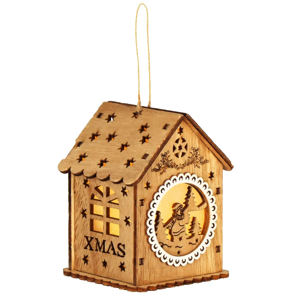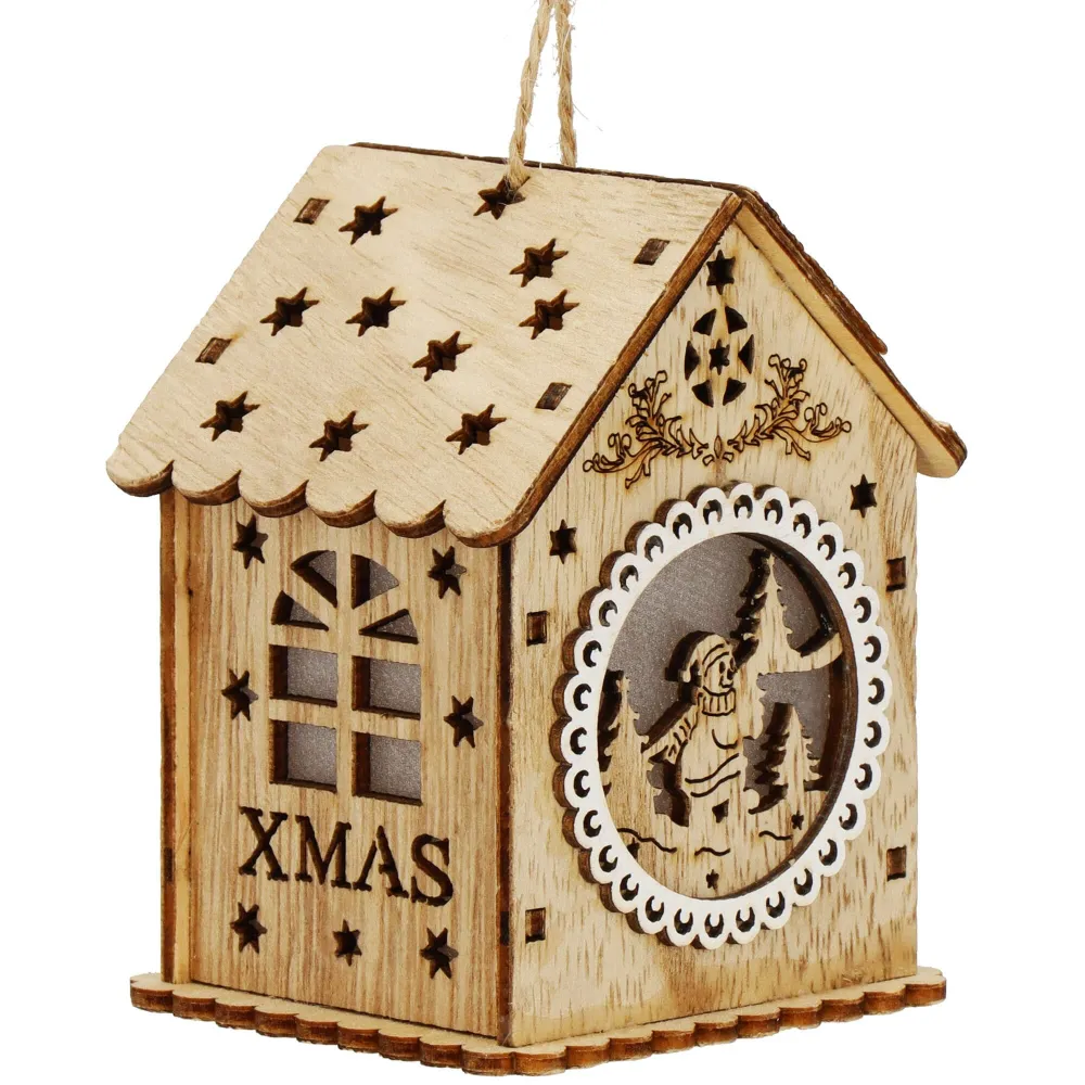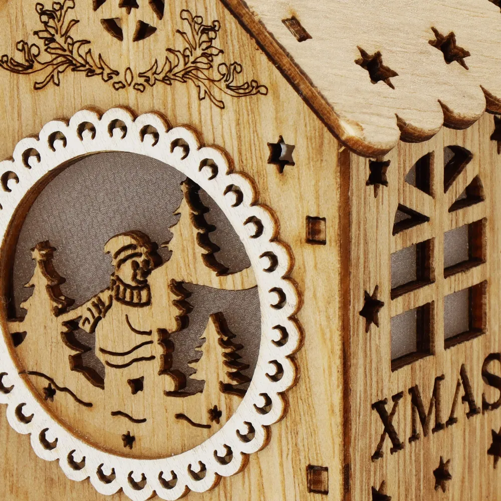 Táto nádherná vianočná ozdoba je vyrobená z kvalitného dreva a očarí svojim detailným rezbárskym spracovaním s motívom domčeka . Ozdoba je vybavená jemným vnútorným osvetlením , ktoré vytvára teplú a príjemnú žiaru, čím oživí akýkoľvek vianočný stromček či dekoráciu.