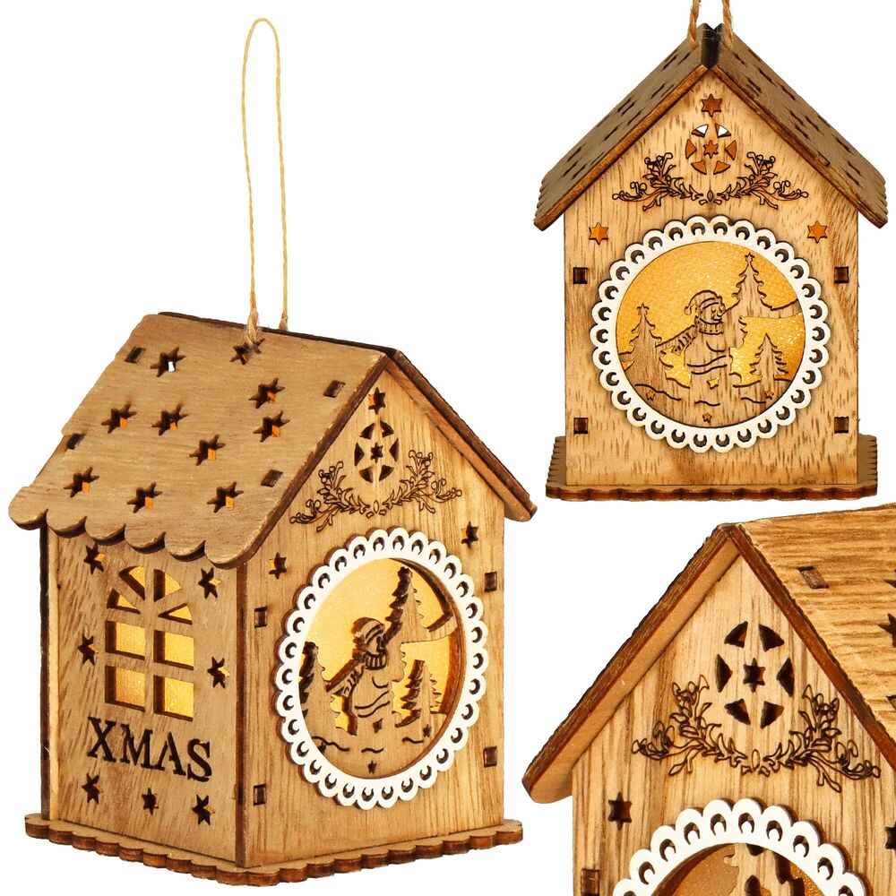 Táto nádherná vianočná ozdoba je vyrobená z kvalitného dreva a očarí svojim detailným rezbárskym spracovaním s motívom domčeka . Ozdoba je vybavená jemným vnútorným osvetlením , ktoré vytvára teplú a príjemnú žiaru, čím oživí akýkoľvek vianočný stromček či dekoráciu.