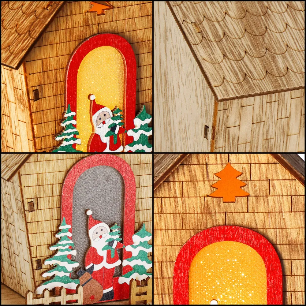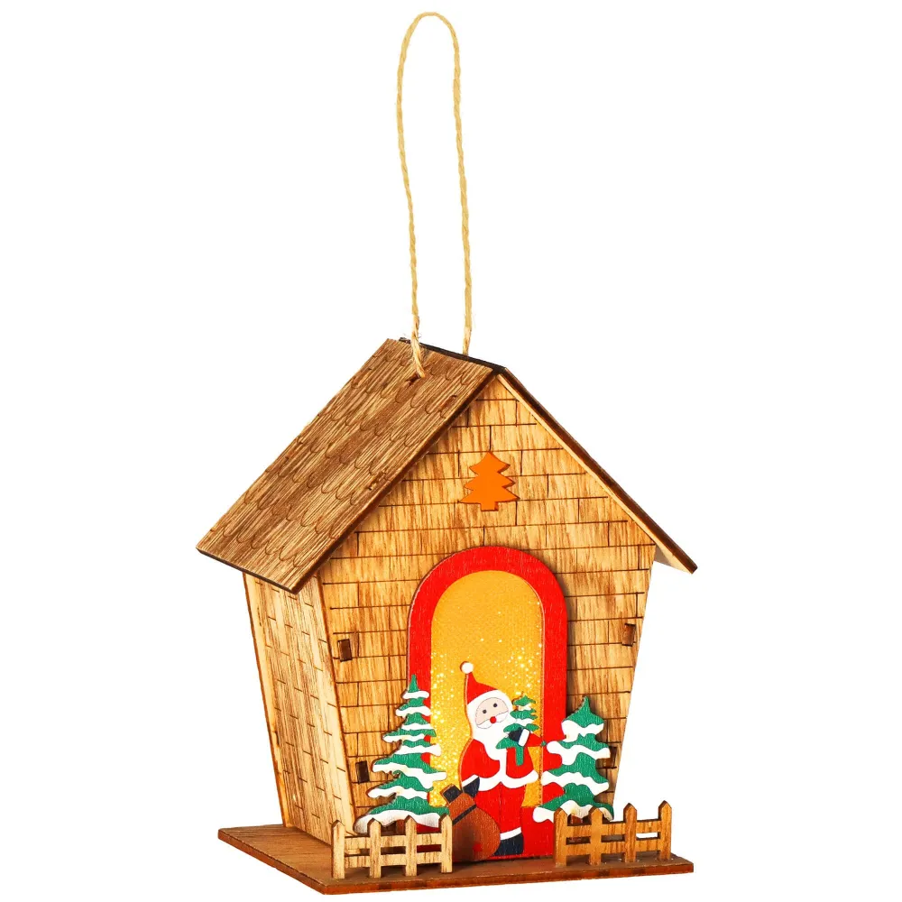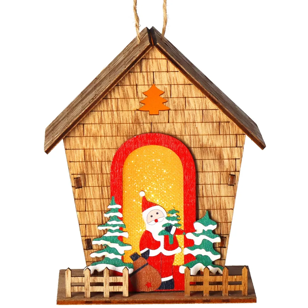 Drevený svietiaci domček 9,5x12,5 cm farebný, vianočná ozdoba