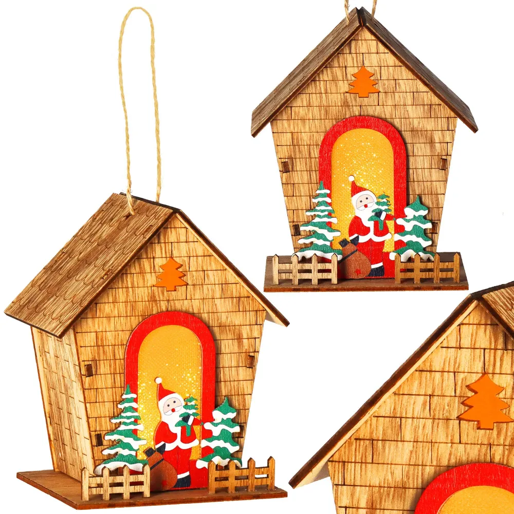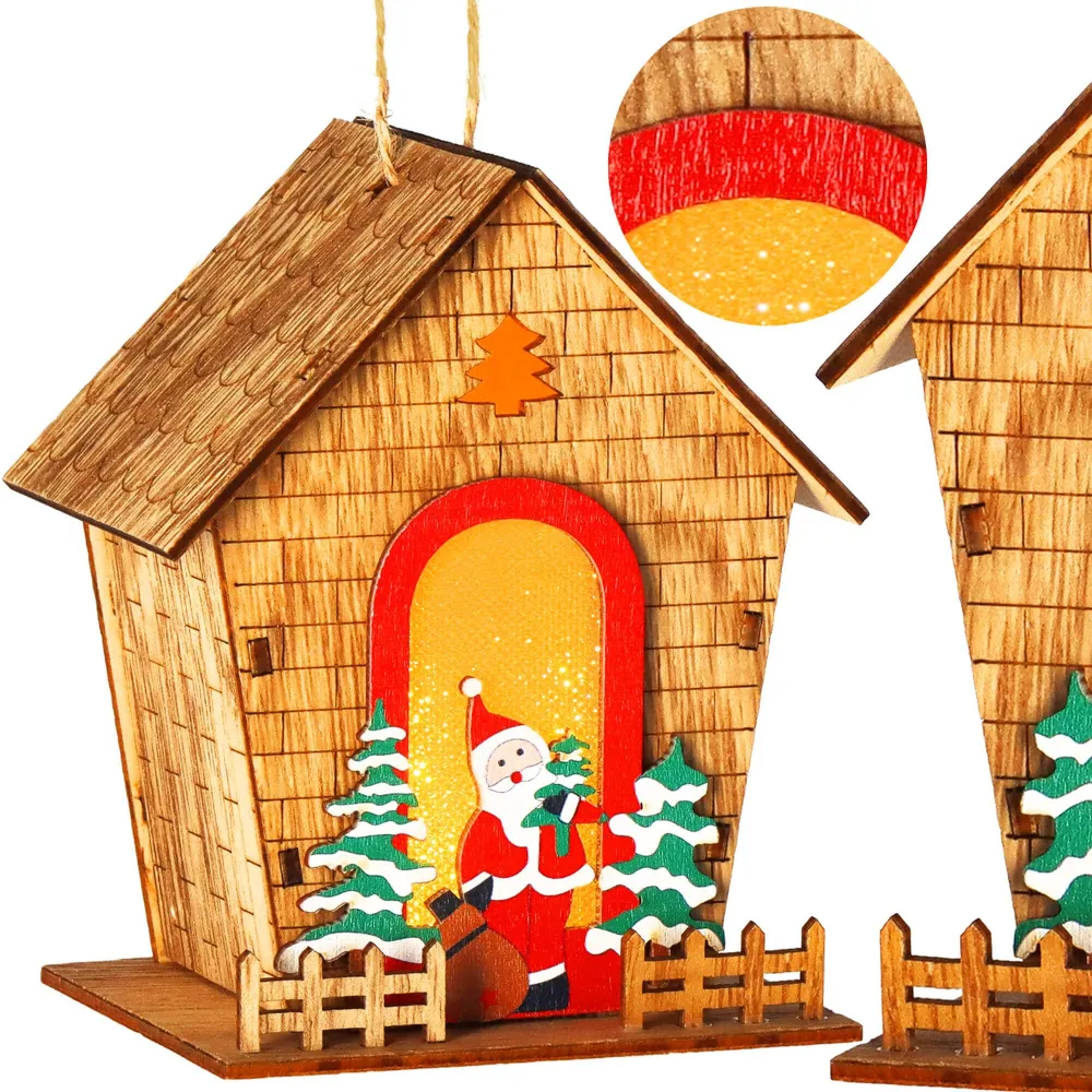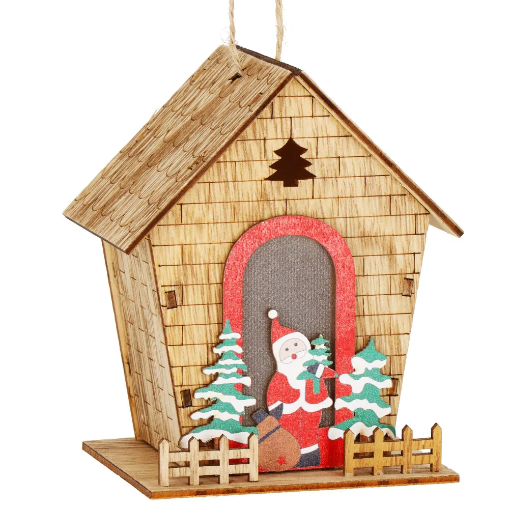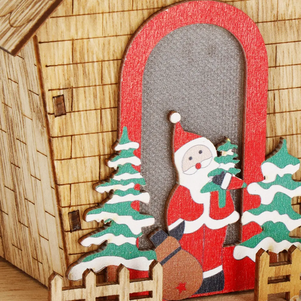 Drevený svietiaci domček 9,5x12,5 cm farebný, vianočná ozdoba