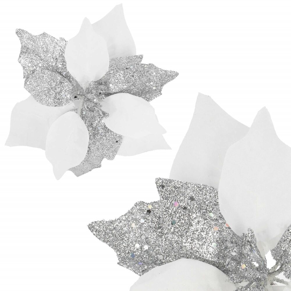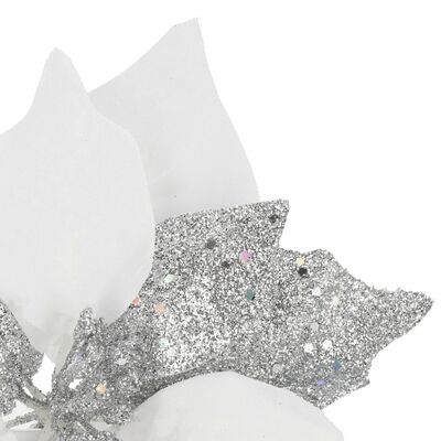 Umelý kvet vianočnej ruže s dvojfarebnými okvetnými lístkami zdobenými trblietkami. Realistické spracovanie, stonka zakončená klipom pre ľahké pripevnenie do rôznych vianočných aranžmánov. Skvele sa tiež hodí ako ozdoba stromčeka alebo ako samostatná dekorácia. Veľkosť 23x8,5 cm, bielo-strieborná farba.