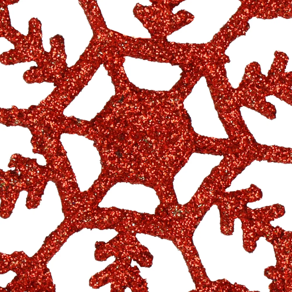 Snehové vločky s trblietkami 12cm červené sada 3ks, vianočné ozdoby