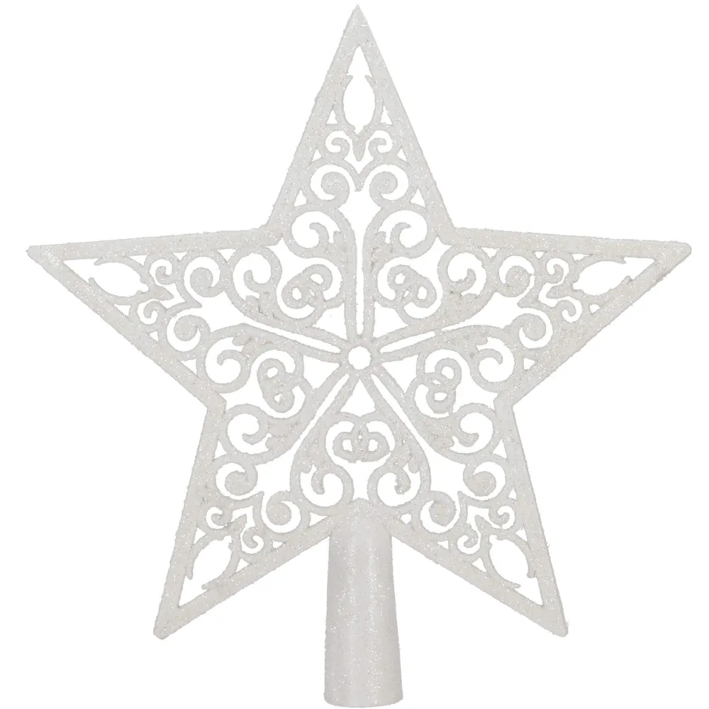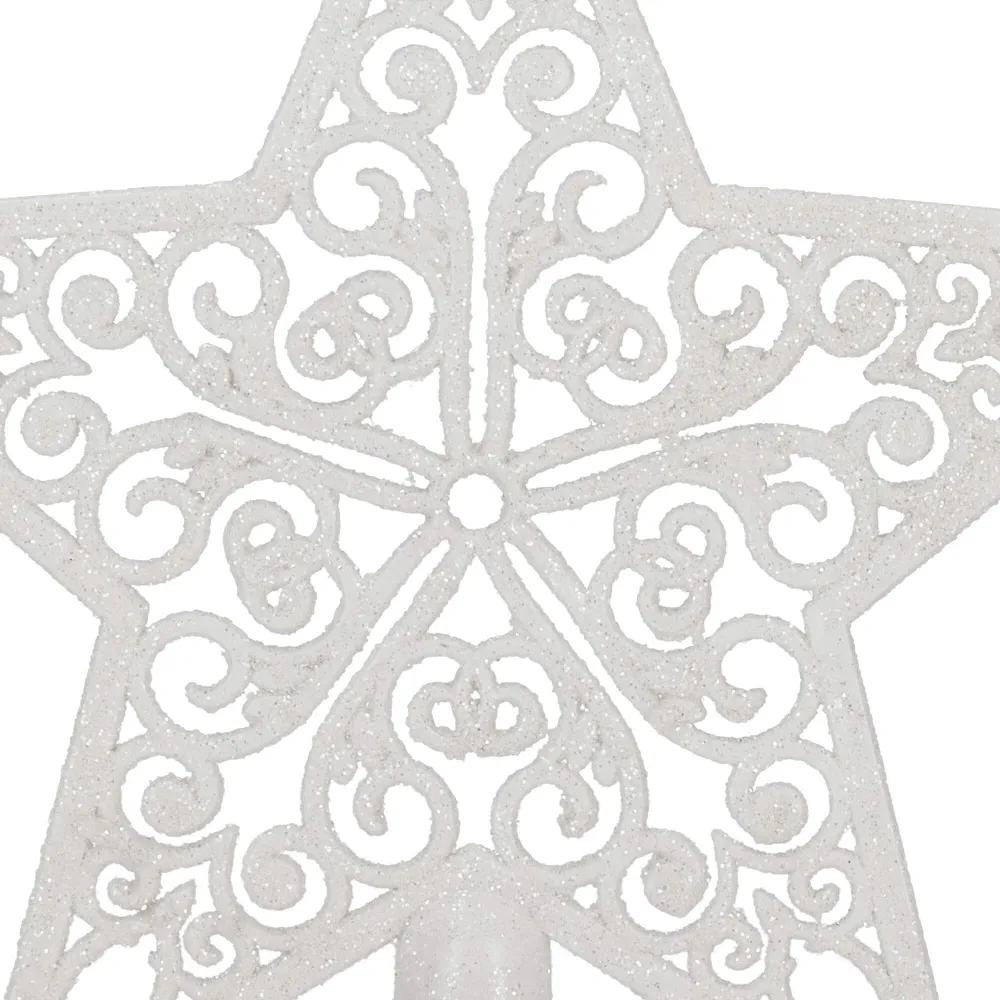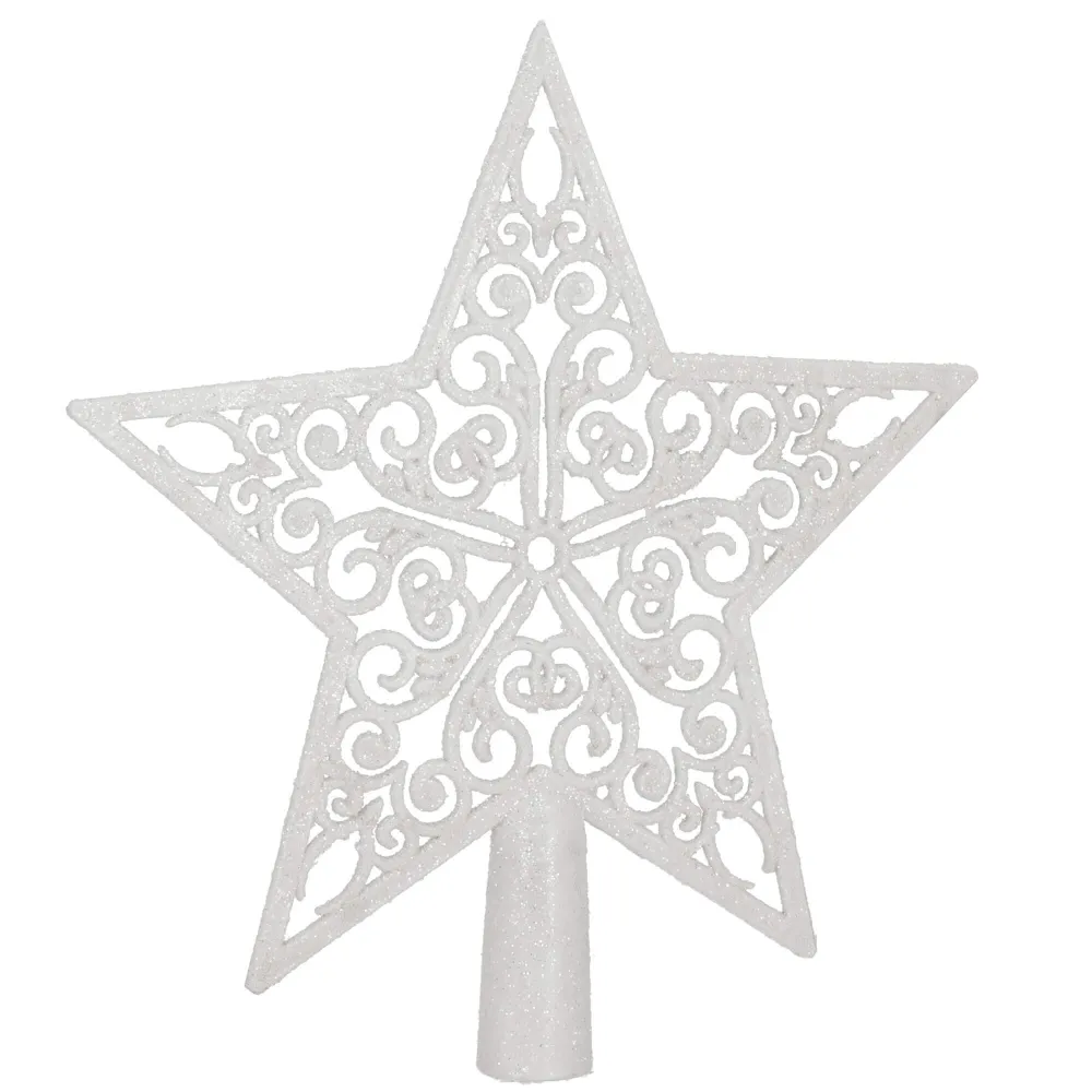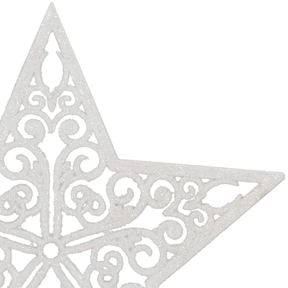 Prekrásne trblietavá hviezda na špičku vianočného stromčeka. Bohato zdobená a prelamovaná pre jedinečné kúzlo a lesk každého stromčeka. Výška 22 cm, nerozbitný materiál, farba biela. Nádherná ozdoba vianočného stromčeka na navodenie príjemnej sviatočnej atmosféry.