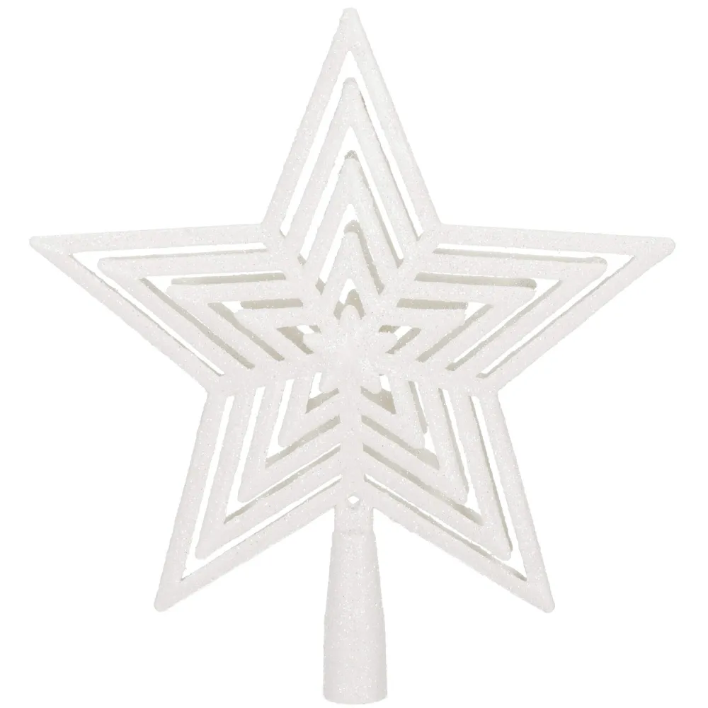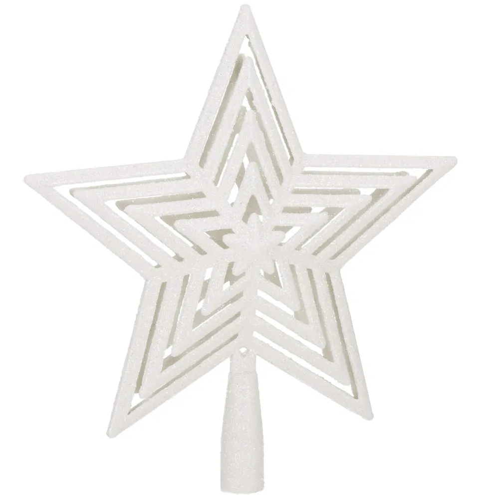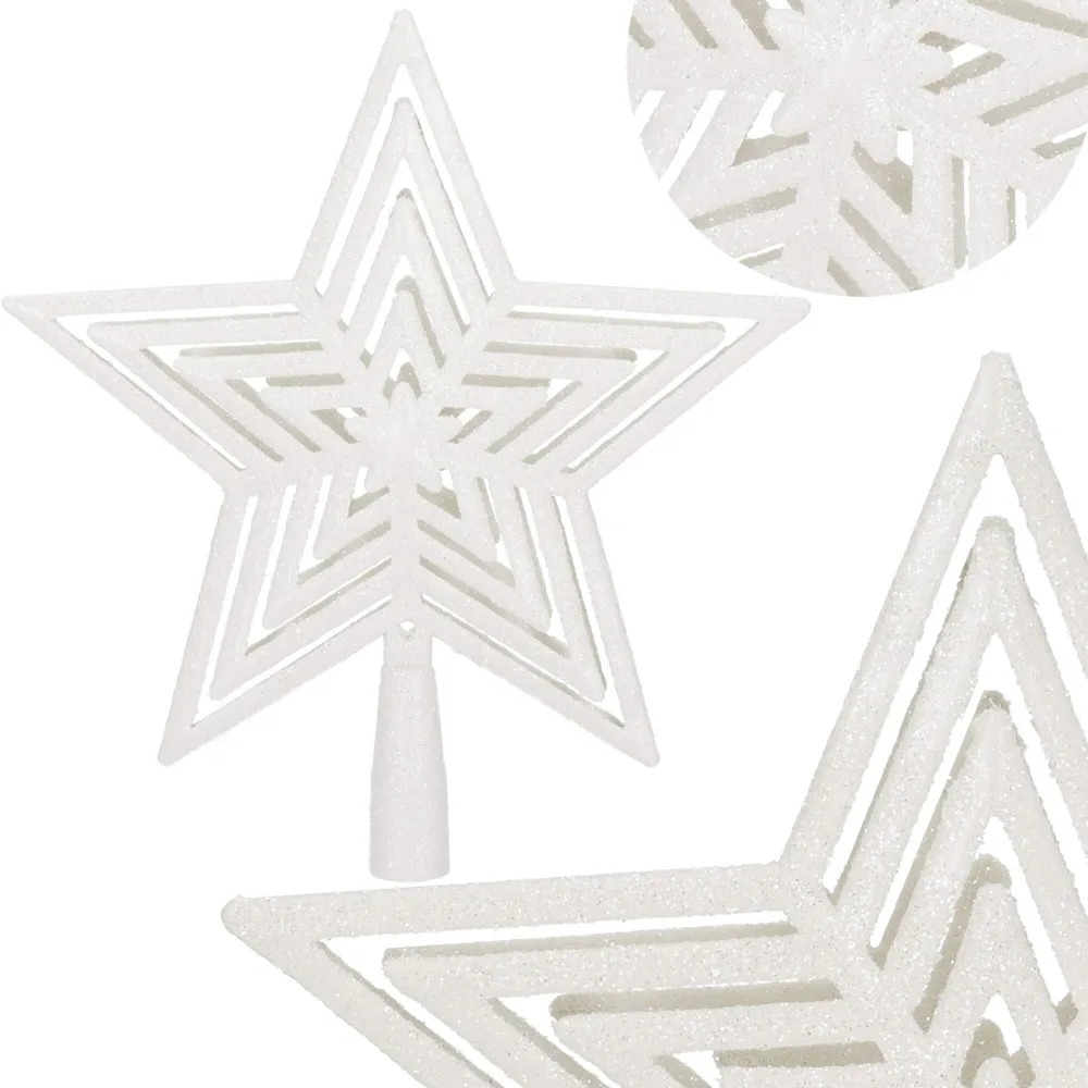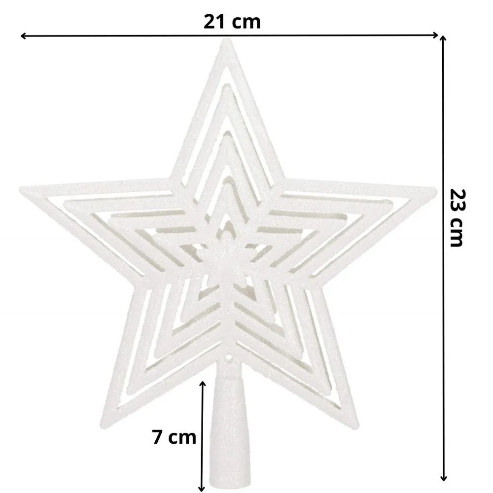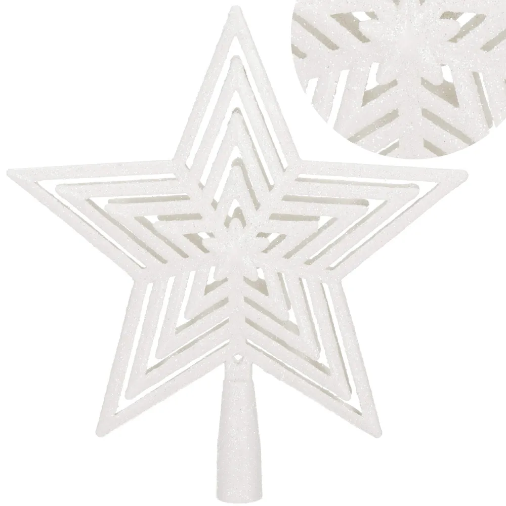 Prekrásne trblietavá hviezda na špičku vianočného stromčeka. Bohato zdobená a prelamovaná pre jedinečné kúzlo a lesk každého stromčeka. Výška 23 cm, nerozbitný materiál, farba biela. Nádherná ozdoba vianočného stromčeka na navodenie príjemnej sviatočnej atmosféry.