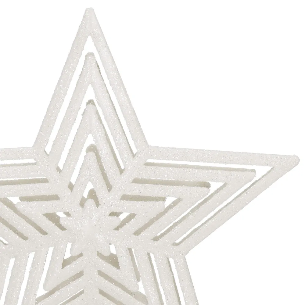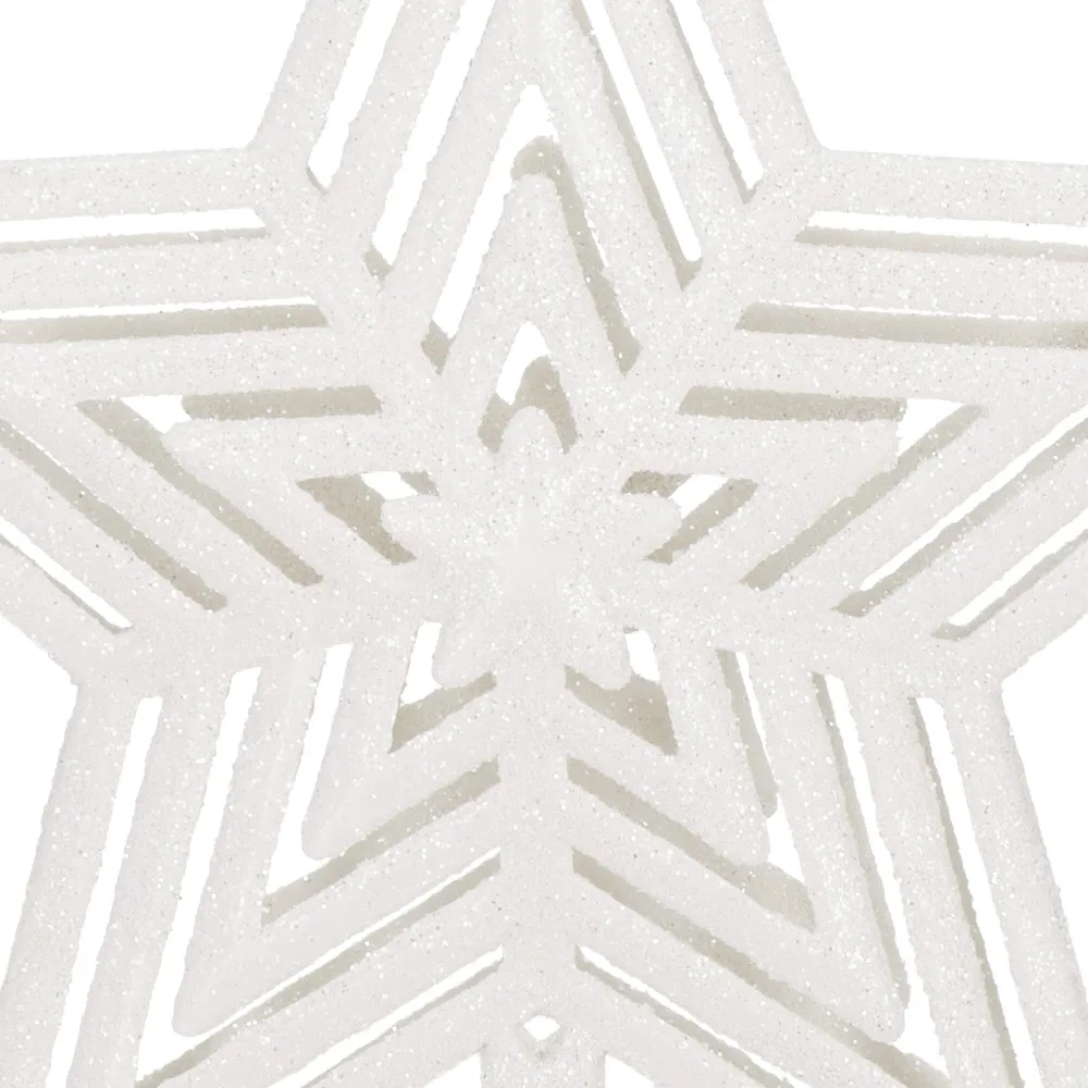 Prekrásne trblietavá hviezda na špičku vianočného stromčeka. Bohato zdobená a prelamovaná pre jedinečné kúzlo a lesk každého stromčeka. Výška 23 cm, nerozbitný materiál, farba biela.