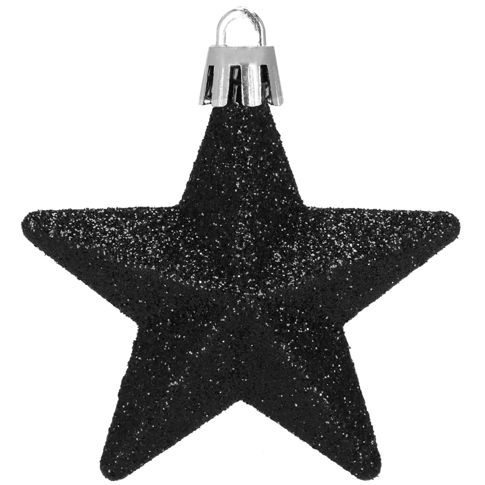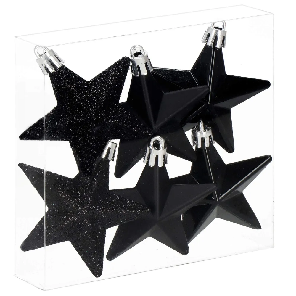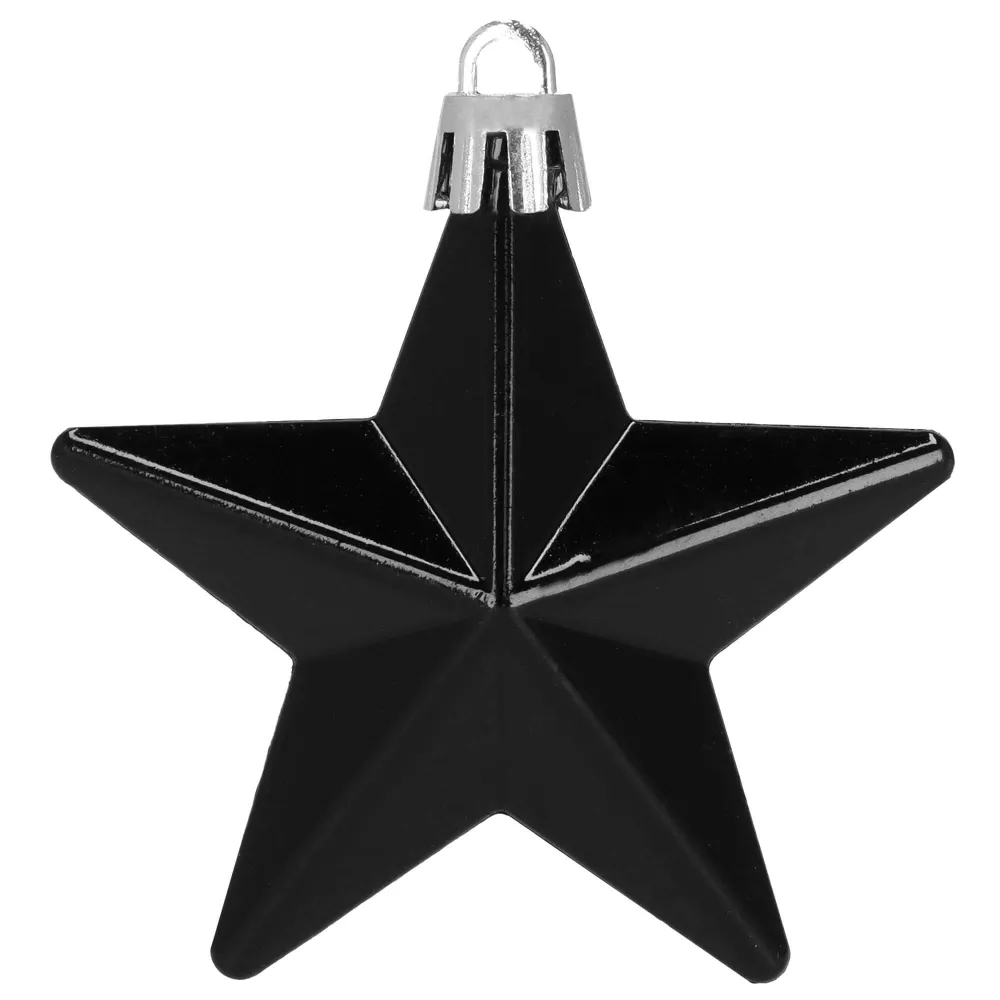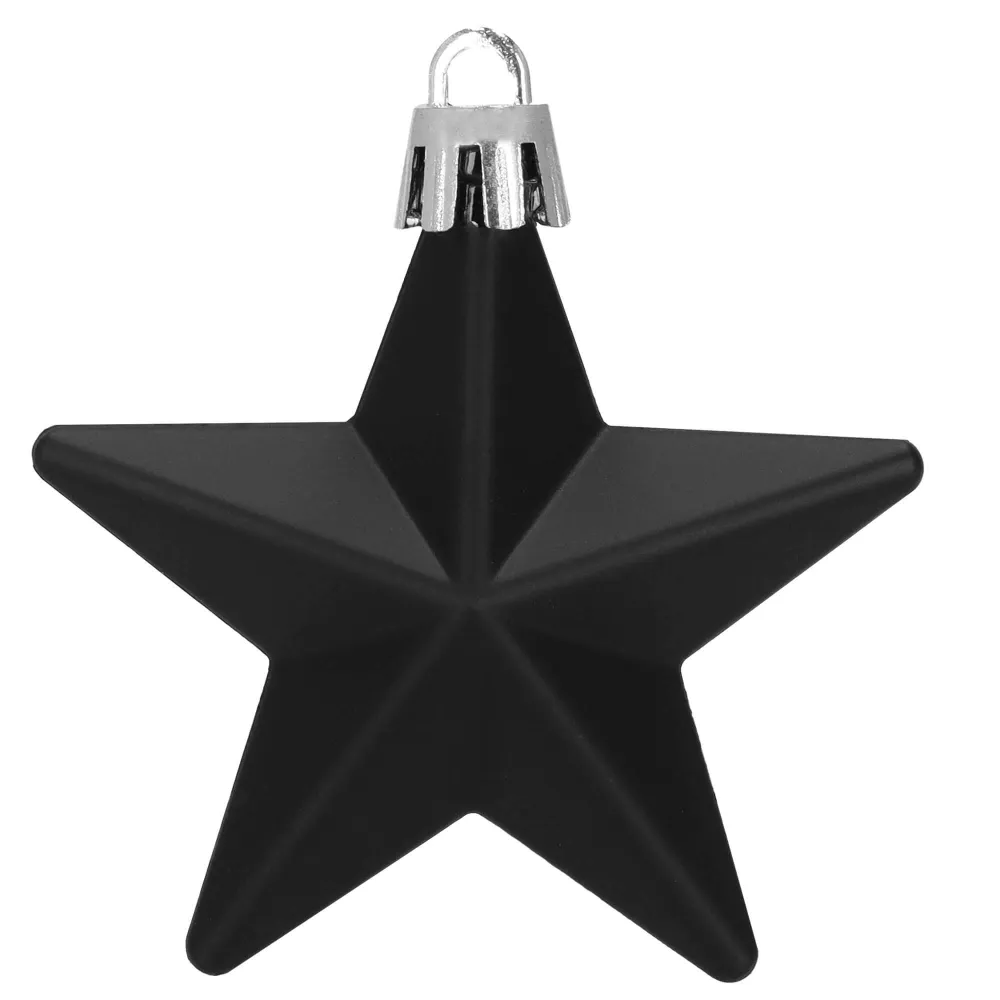 Sada 6 ks čiernych ozdôb na stromček s motívom hviezdy. Výška ozdoby 7 cm, v troch rôznych prevedeniach, pútko na zavesenie, nerozbitný plastový materiál. Ideálne na výzdobu stromčeka alebo ako vianočné dekorácie. Zadarmo povrázky pre ľahké zavesenie.