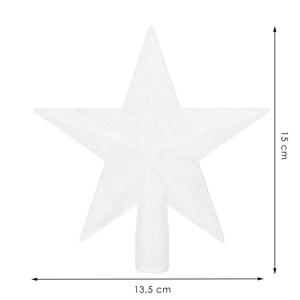 Prekrásne trblietavá hviezda na špičku vianočného stromčeka. Bohato zdobená pre jedinečné kúzlo a lesk každého stromčeka. Výška 15 cm, nerozbitný materiál, farba biela. Nádherná ozdoba vianočného stromčeka na navodenie príjemnej sviatočnej atmosféry.