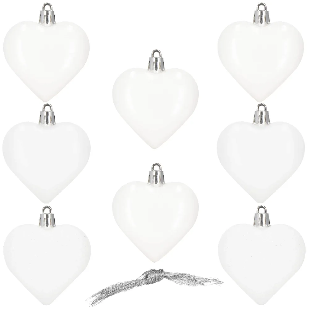 Sada vianočných ozdôb v tvare srdiečok v bielom prevedení dodá vašej výzdobe jemný a romantický vzhľad. Ideálna ako dekorácia na vianočný stromček, sviatočný stôl alebo do okien. Vyrobené z nerozbitného plastového materiálu, vhodné na vnútorné aj vonkajšie použitie. Súčasťou balenia sú pútka na zavesenie. Priemer 6 cm, celkom 8 kusov v sade.