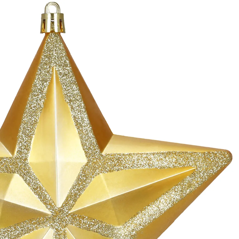 Elegantná vianočná ozdoba v tvare zlatej hviezdy skvele doplní tradičnú aj modernú výzdobu. Kombinácia matného a lesklého povrchu vytvára výrazný efekt, ktorý krásne odráža svetlo. Vďaka nerozbitnému plastu je ľahká a bezpečná. Pútko umožňuje ľahké zavesenie a rozmery 16 × 15 cm z nej robia neprehliadnuteľný dekoratívny prvok.
