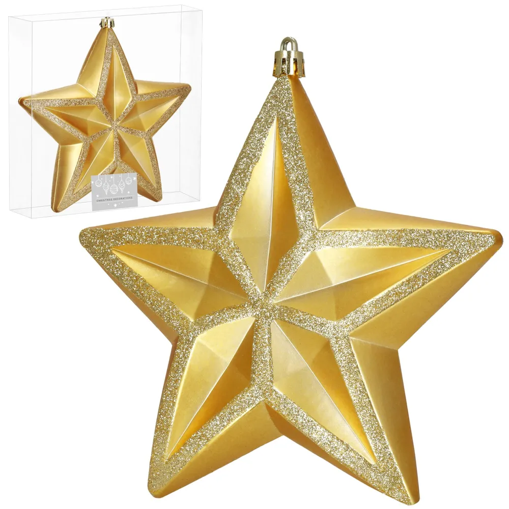 Elegantná vianočná ozdoba v tvare zlatej hviezdy skvele doplní tradičnú aj modernú výzdobu. Kombinácia matného a lesklého povrchu vytvára výrazný efekt, ktorý krásne odráža svetlo. Vďaka nerozbitnému plastu je ľahká a bezpečná. Pútko umožňuje ľahké zavesenie a rozmery 16 × 15 cm z nej robia neprehliadnuteľný dekoratívny prvok.