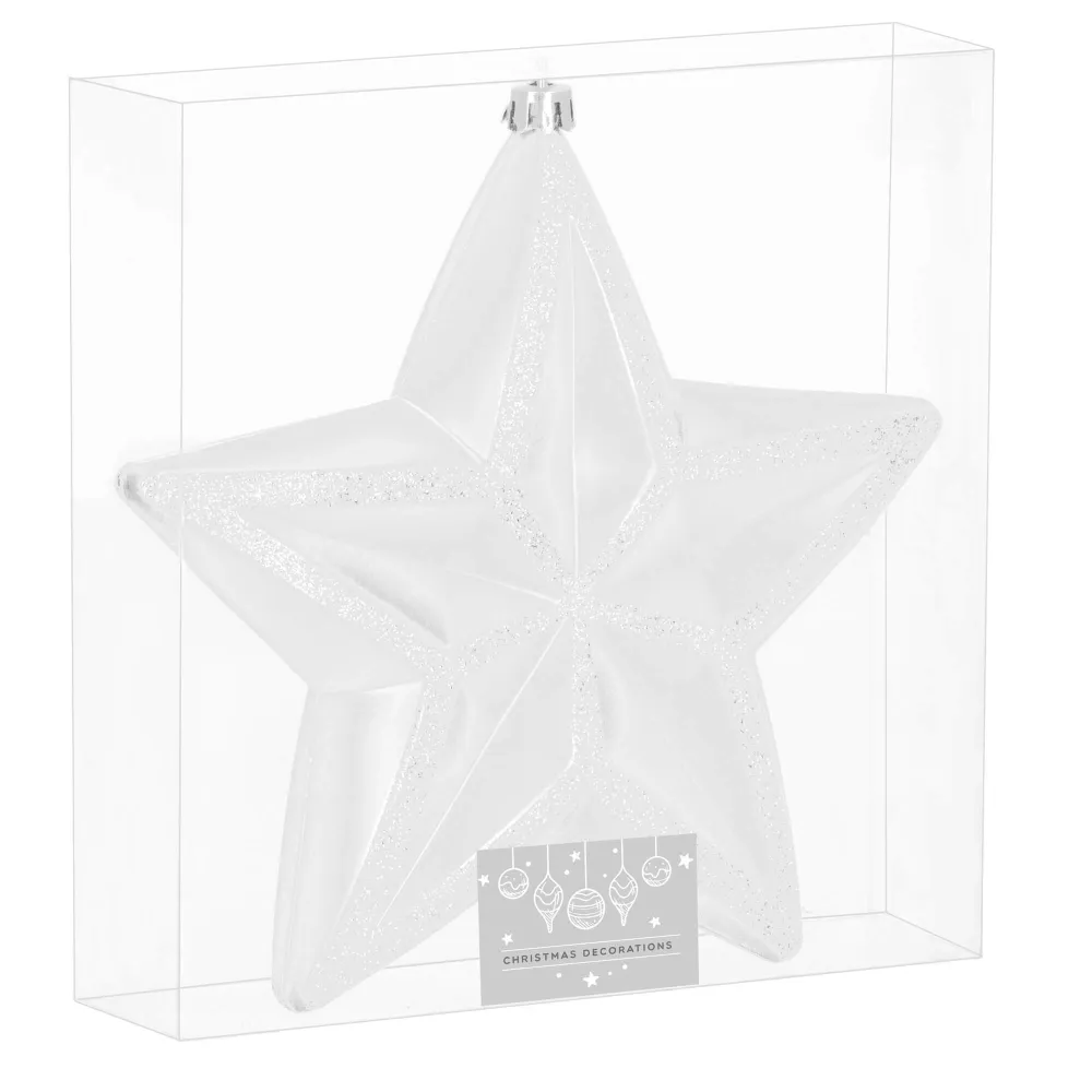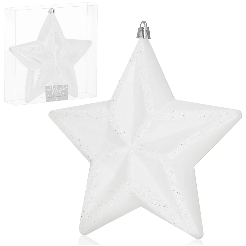 Vianočná hviezda biela 16×15 cm je elegantná ozdoba, ktorá dodá vianočnej výzdobe luxusný a slávnostný nádych. Kombinácia matného a lesklého povrchu vytvára výrazný 3D efekt, vďaka ktorému hviezda krásne vynikne na stromčeku aj v ďalších dekoráciách. Ozdoba je vyrobená z nerozbitného plastu , takže je ľahká, bezpečná a vhodná do každej domácnosti.