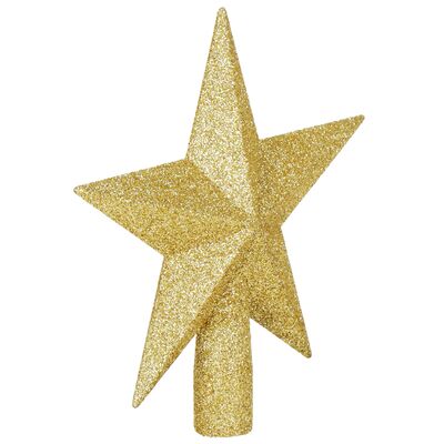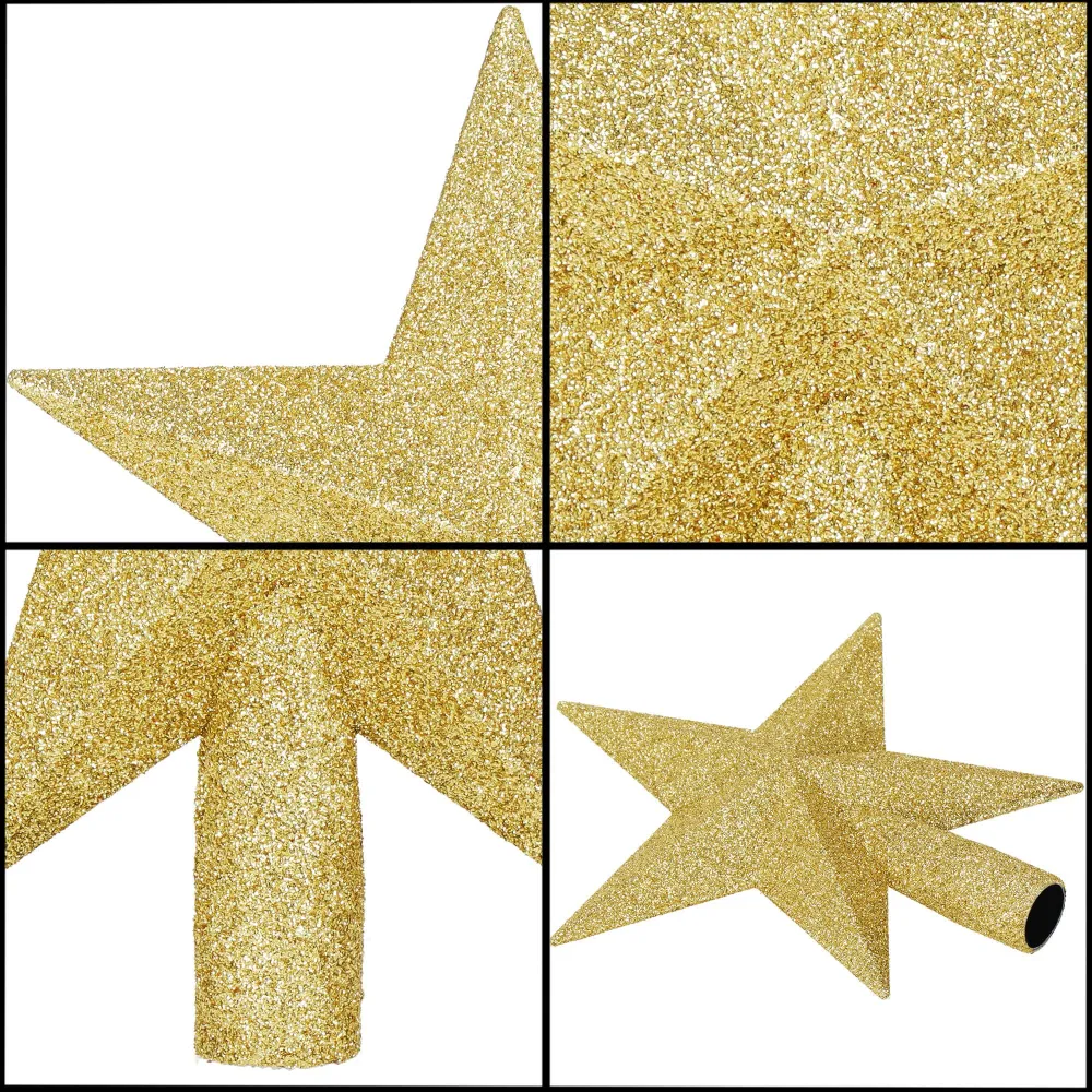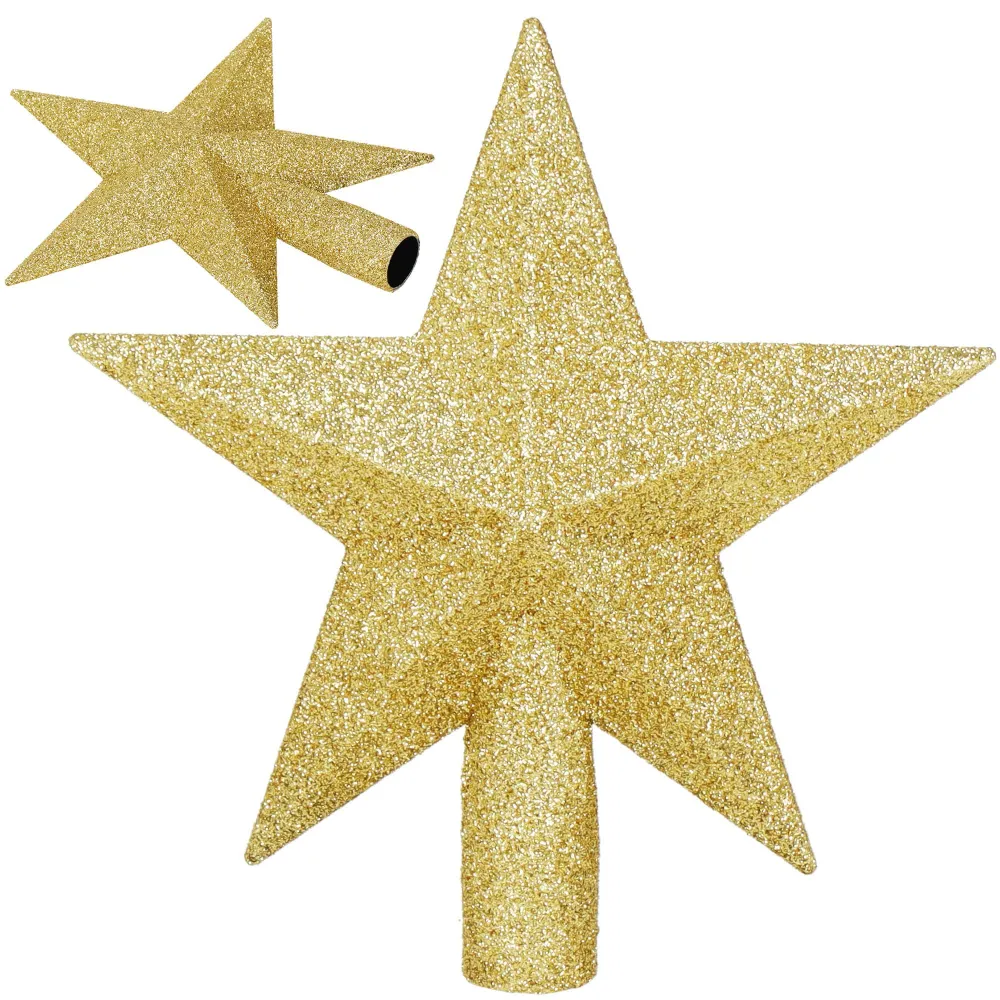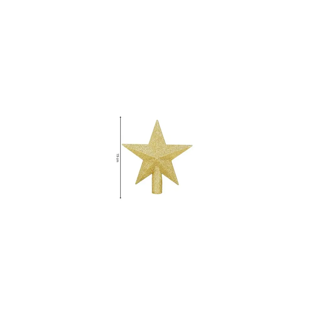 Hviezda na vianočný stromček 19 cm zlatá je elegantná a trblietavá dekorácia, ktorá dodá vianočnému stromčeku luxusný a slávnostný vzhľad. Zlatý povrch krásne odráža svetlo a vytvára tak výrazný efekt, vďaka ktorému sa hviezda stane neprehliadnuteľným vrcholom celej výzdoby. Vyrobená je z ľahkého, nerozbitného plastového materiálu , takže sa ľahko nasadzuje a bezpečne drží na špičke stromčeka. Tradičný tvar hviezdy podčiarkuje symboliku Vianoc a bez problémov ladí s ďalšími ozdobami.