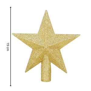 Zlatá trblietavá hviezda z ľahkého, nerozbitného plastu dodá vianočnému stromčeku jemný a elegantný vzhľad. Vďaka otvoru s priemerom 1,5 cm sa ľahko nasadzuje na špičku. Originálna dekorácia v klasickom tvare hviezdy rozžiari výzdobu svojou výškou 19 cm a šírkou 19 cm.