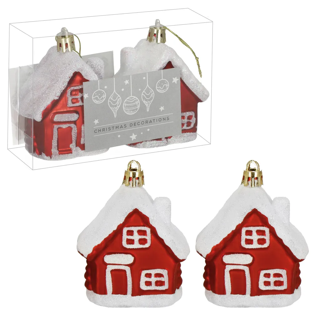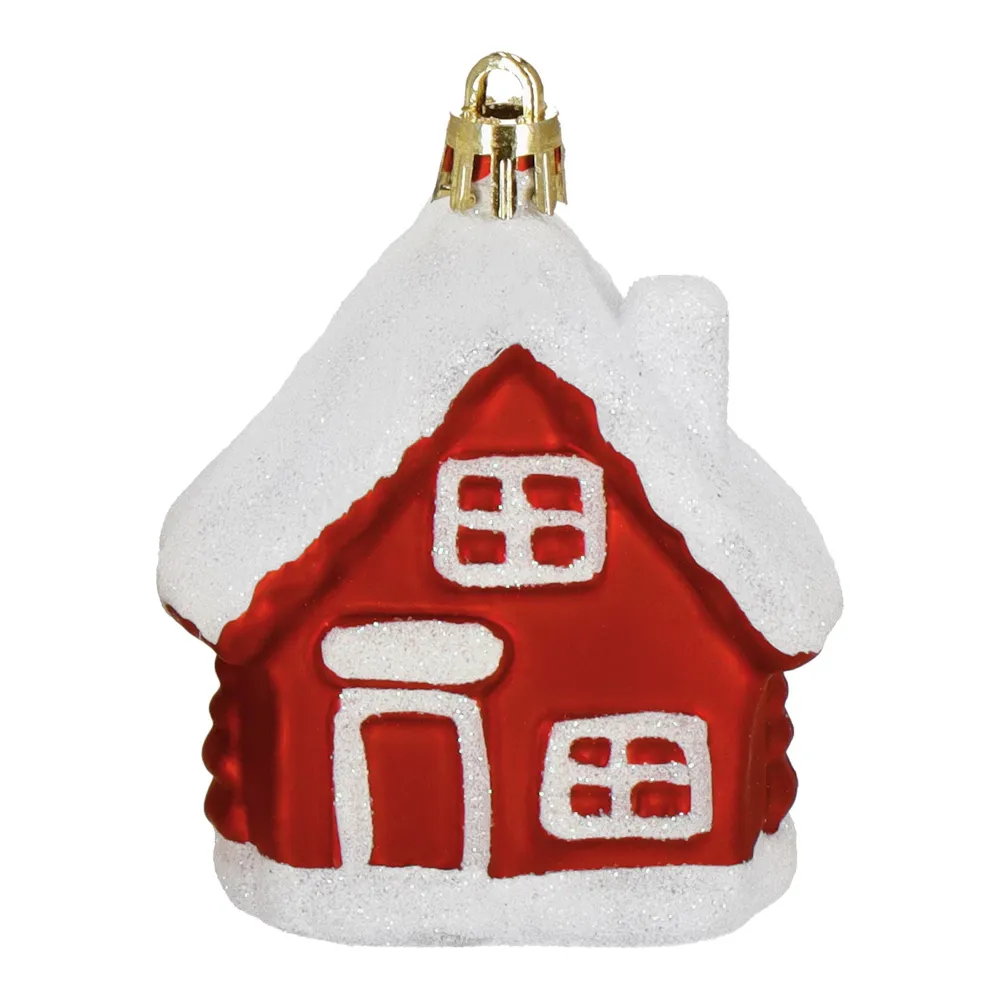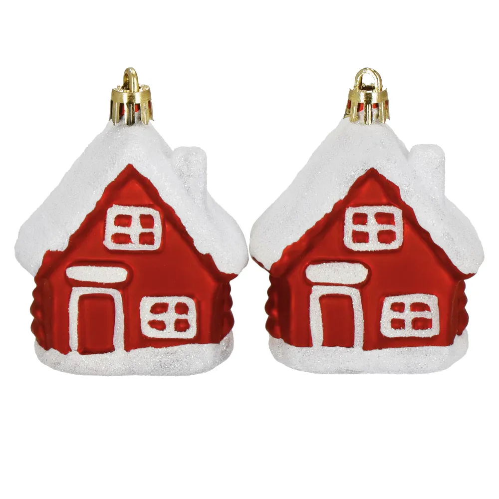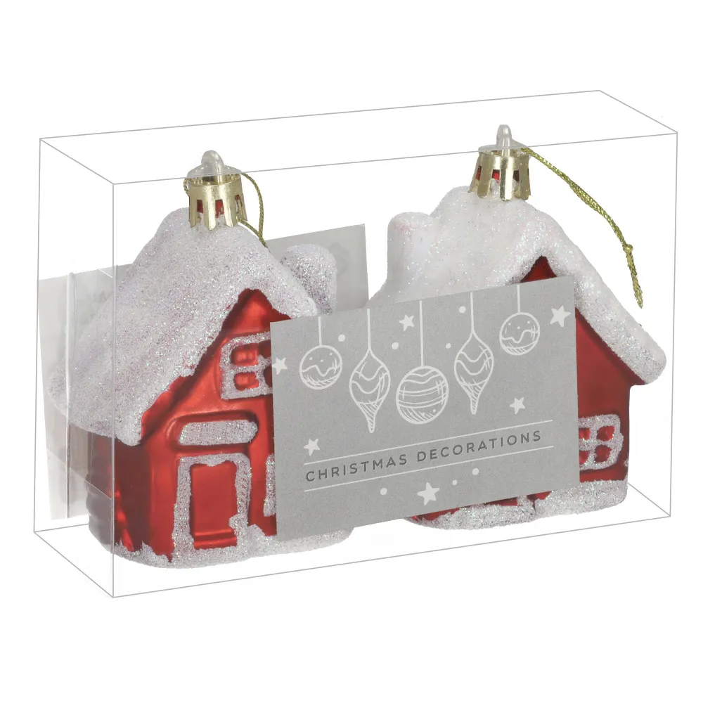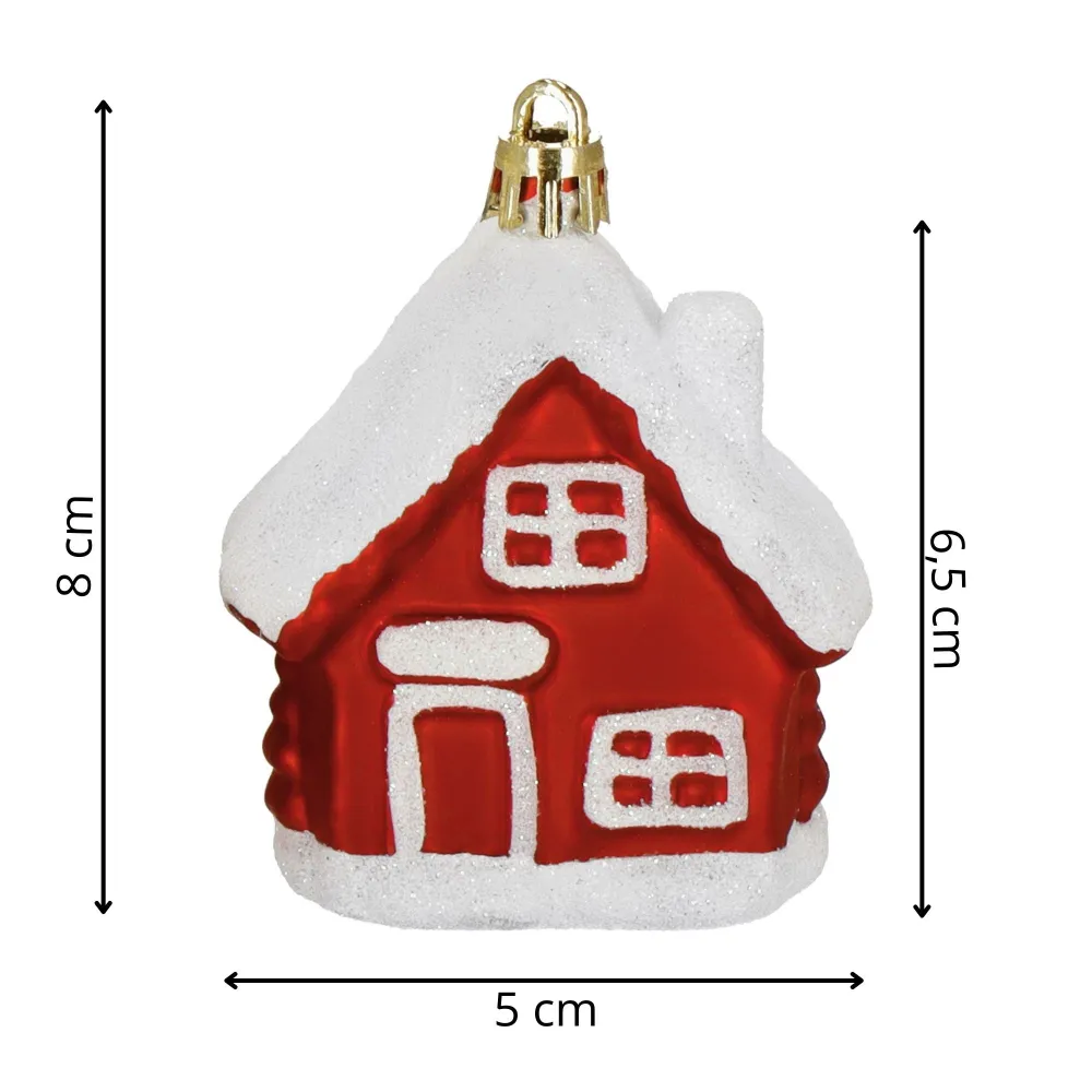 Pôvabné vianočné ozdoby v tvare zasnežených domčekov v červeno-bielom prevedení dodajú výzdobe rozprávkový vzhľad. Každý domček je vybavený pútkom a povrázkom pre ľahké zavesenie. Skvele sa hodí na stromček, veniec aj do rôznych dekorácií, kde vytvorí útulnú zimnú atmosféru. Rozmery 5x8 cm. Nerozbitný plastový materiál.