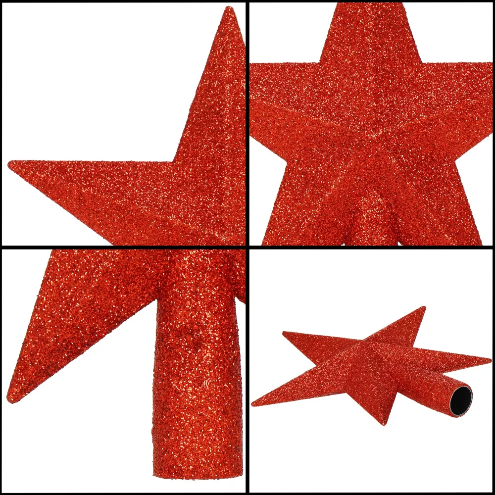 Trblietavá červená hviezda v plastovom prevedení dodá vianočnému stromčeku výrazný a slávnostný vzhľad. Ľahký, nerozbitný materiál zaisťuje ľahké umiestnenie na špičku stromčeka. Vďaka svojmu výraznému tvaru a veľkosti 19 cm pôsobí ako originálna dekorácia, ktorá krásne doplní sviatočnú atmosféru.