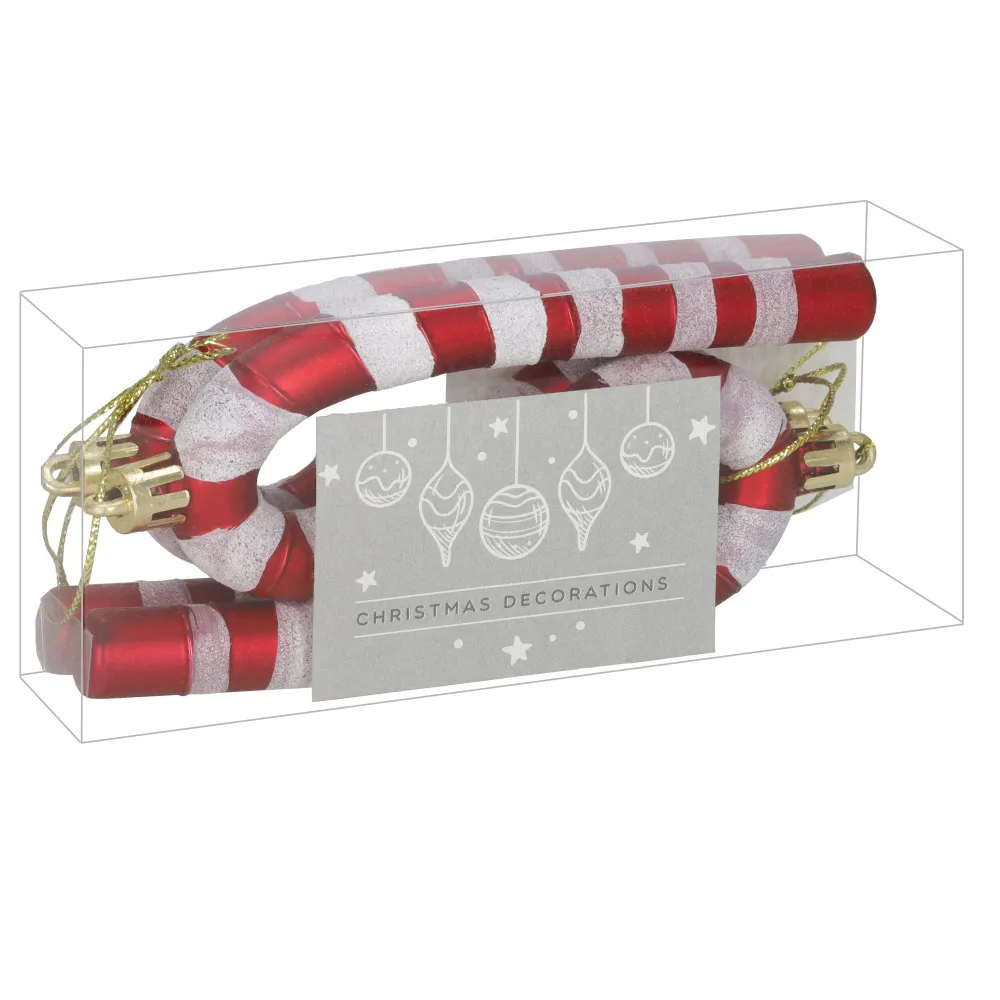 Sada červeno-bielych ozdôb v tvare lízaniek dodá vianočnému stromčeku hravý a sladký vzhľad. Ľahký, nerozbitný plastový materiál zaisťuje ľahkú manipuláciu aj bezpečné zavesenie. Originálna dekorácia v typickom candy štýle sa skvele hodí na stromček aj do ďalších vianočných aranžmánov.