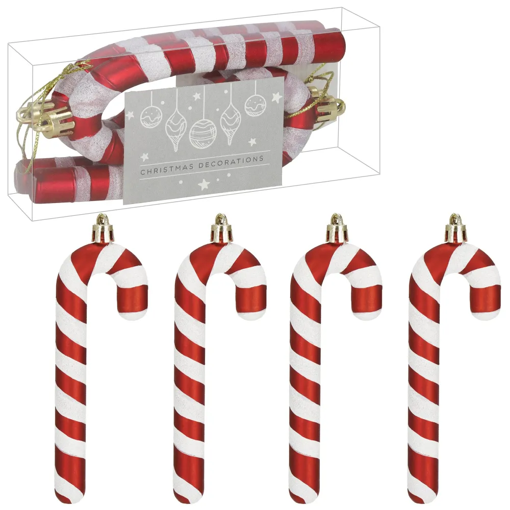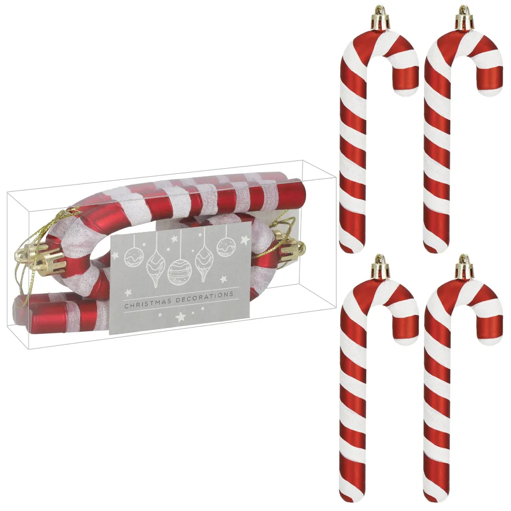 Vianočné ozdoby lízanky červeno-biele – súprava 4 ks sú hravým a výrazným doplnkom, ktorý dodá vášmu vianočnému stromčeku veselý candy štýl. Tieto dekorácie zaujmú klasickým špirálovým vzorom v červenej a bielej farbe, ktorý dokonale zapadne do tradičnej aj modernej vianočnej výzdoby. Vďaka nerozbitnému plastovému materiálu sú ozdoby ľahké, odolné a vhodné aj do domácností s deťmi. Každé lízatko je vybavené pútkom, čo umožňuje ľahké zavesenie na stromček alebo iné dekoratívne prvky.