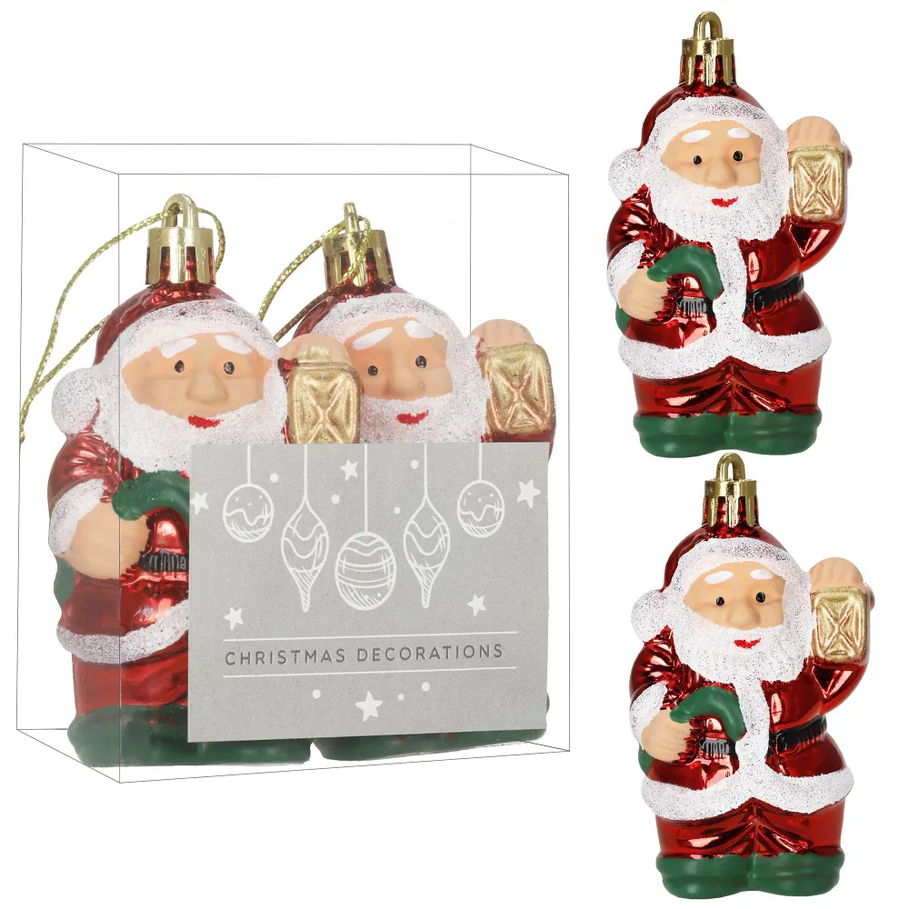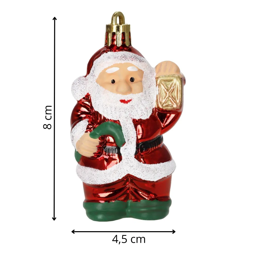 Trblietavé vianočné ozdoby v podobe Santa Clausa dodajú výzdobe veselý a žiarivý vzhľad. Vďaka nerozbitnému plastu sú odolné a bezpečné, rozmery 8×4,5 cm z nich robia ideálnu veľkosť na stromček. Každý kus má pútko a povrázok pre ľahké zavesenie a možno ho použiť ako ozdobu aj dekoráciu v rôznych aranžmánoch.