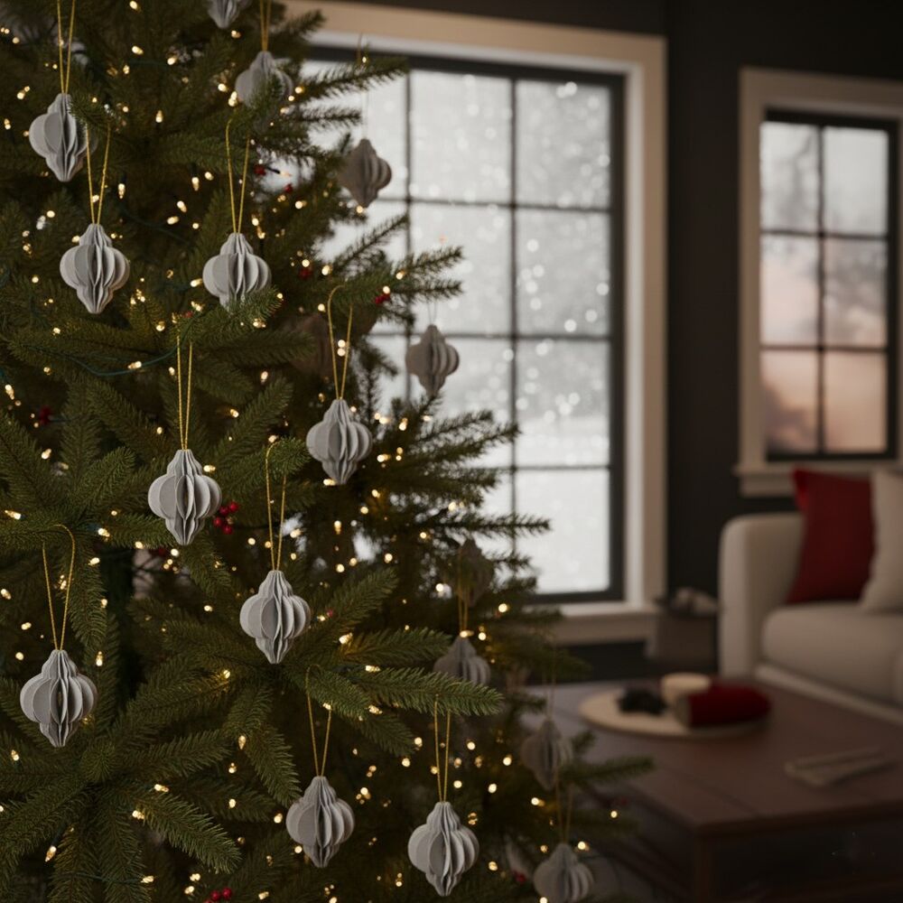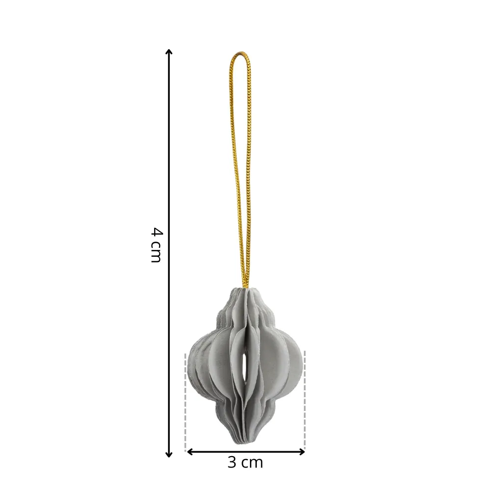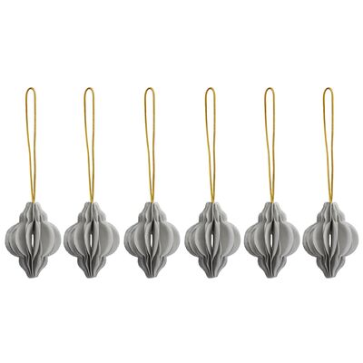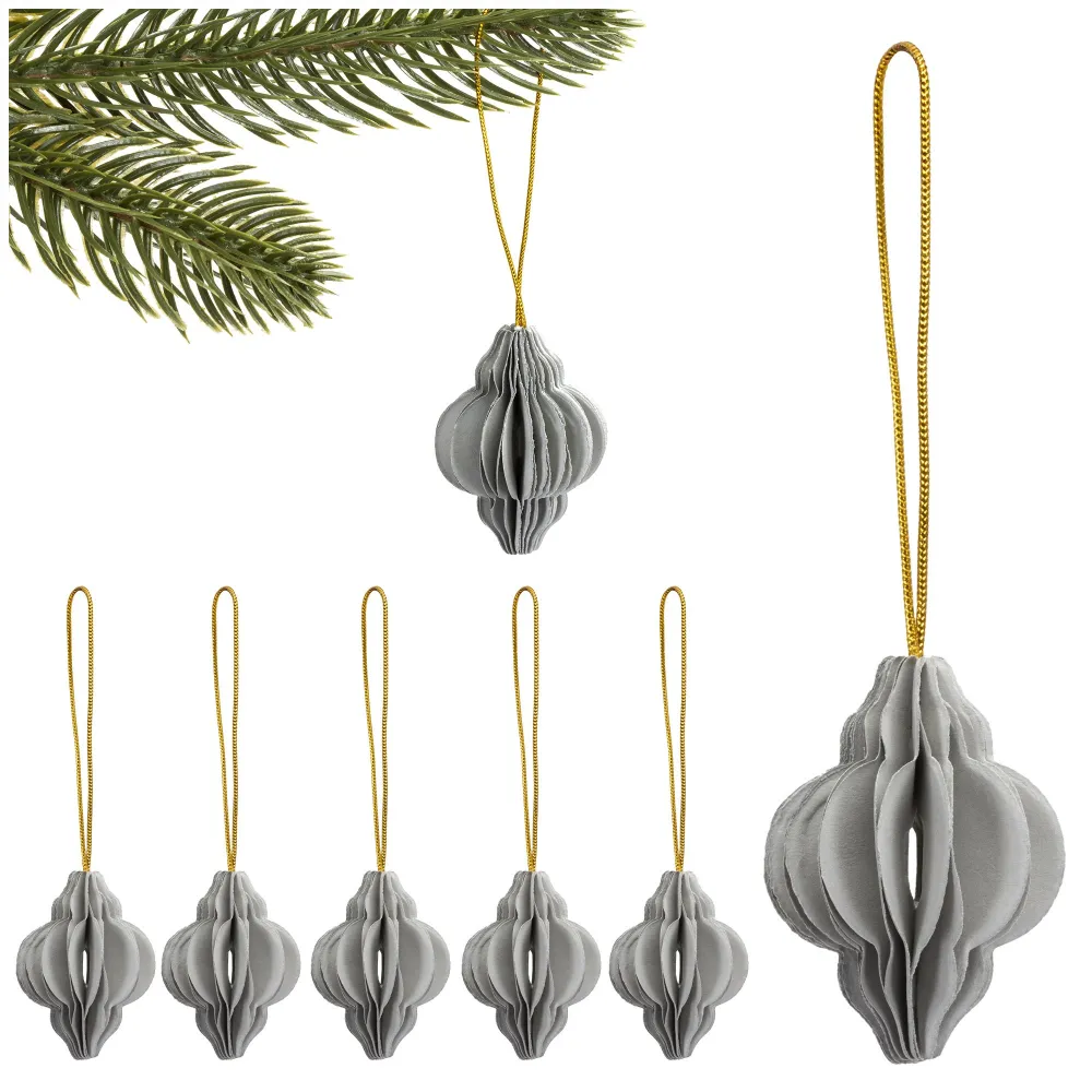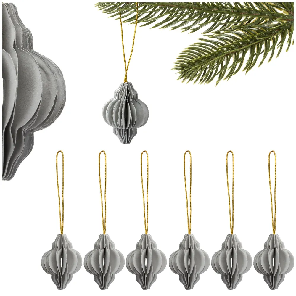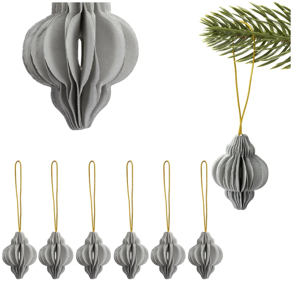 Vianočné papierové ozdoby 4 cm súprava 6 ks v jemnom šedom prevedení sú skvelým doplnkom pre minimalistické či moderné vianočné dekorácie. Vďaka svojmu decentnému vzhľadu sa hodí na ozdobenie stromčeka, vetvičiek vo váze alebo ako súčasť kreatívnych aranžmánov. Ľahký papierový materiál a pútka na jednoduché zavesenie umožňujú rýchle a nenáročné umiestnenie, zatiaľ čo neutrálna farba krásne zapadne do rôznych štýlov interiéru.
