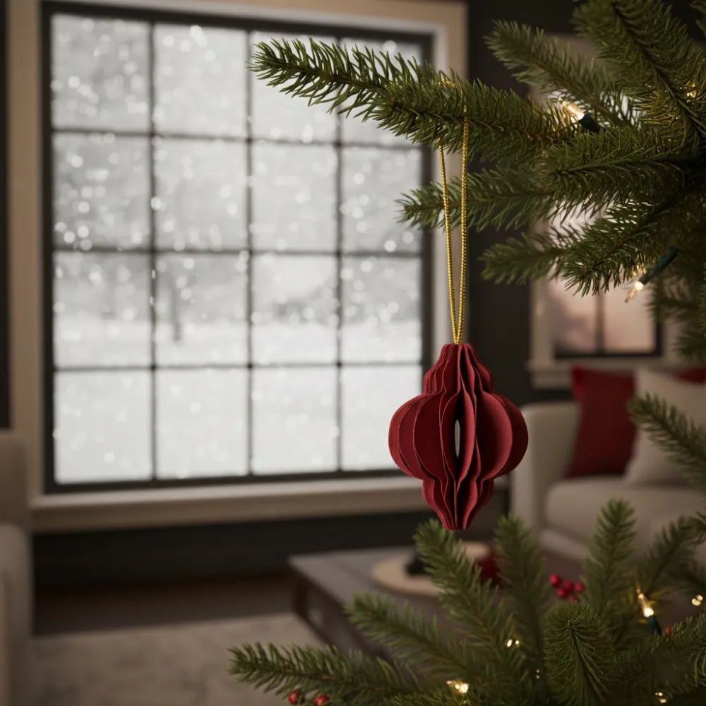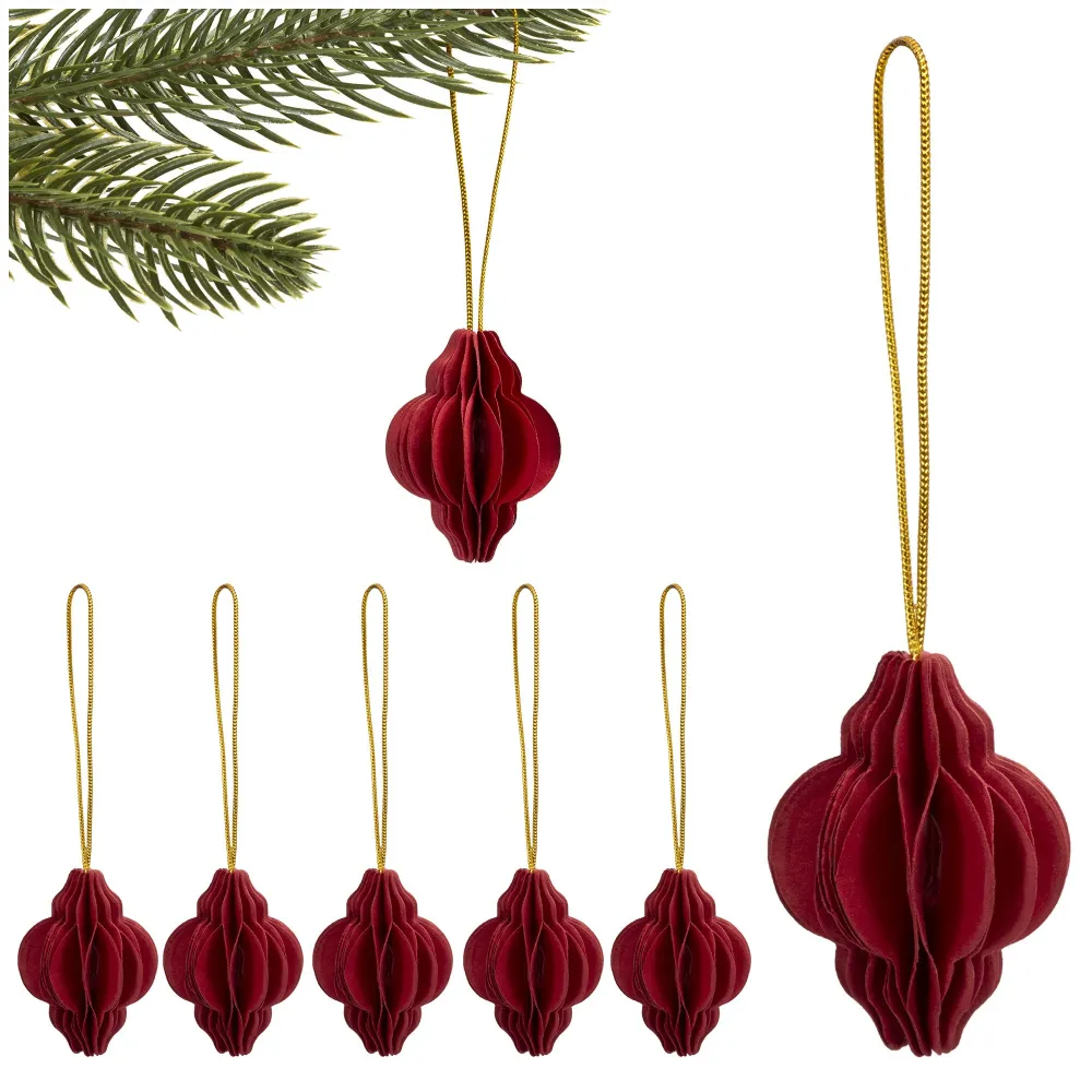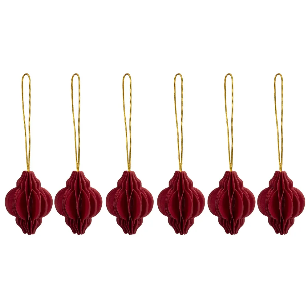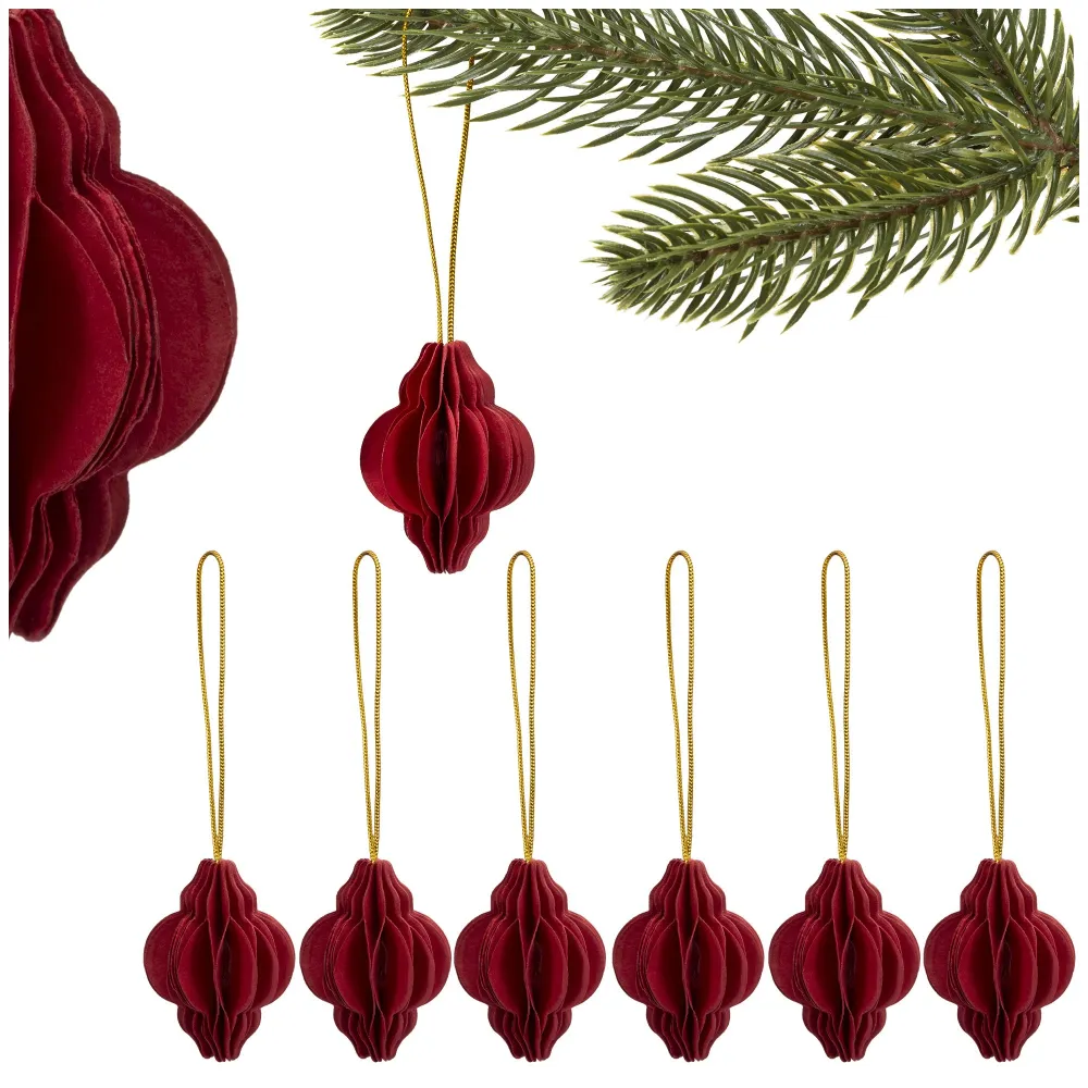 Sada šiestich červených papierových ozdôb dodá vianočnej výzdobe teplý a útulný nádych. Vďaka pútkom ich ľahko zavesíte na stromček, vetvičky či do sviatočných aranžmánov. Ľahký papierový materiál je ideálny na vnútorné použitie a krásne doplní zimnú atmosféru. Skvelé na oživenie dekorácií, vytvorenie kontrastu a pridanie jemného slávnostného akcentu.