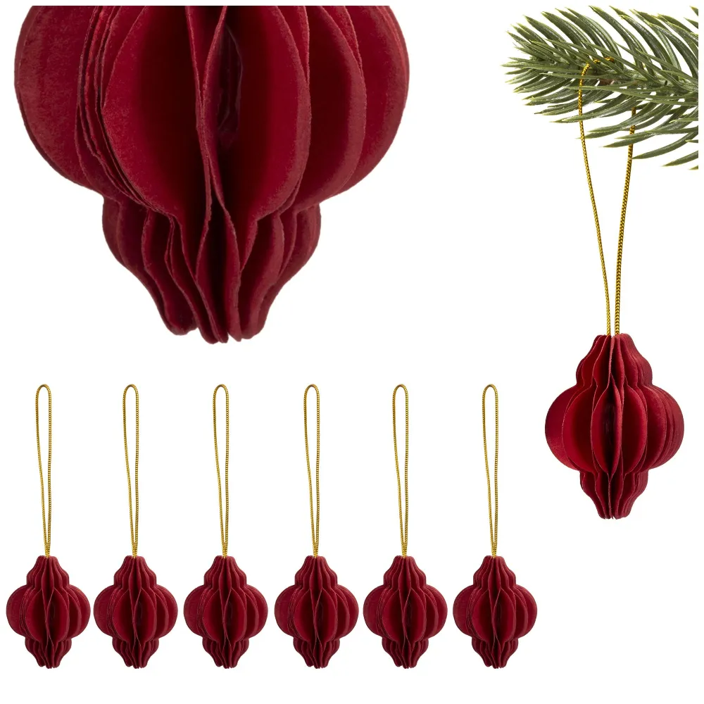 Vianočné papierové ozdoby červené 4 cm súprava 6 ks prinášajú do sviatočnej výzdoby hrejivý a príjemný nádych. Jemné papierové prevedenie pôsobí ľahko a elegantne, takže sa skvele hodí na vianočný stromček, vetvičky vo váze či do menších dekorácií. Vďaka pútkom pre ľahké zavesenie je možné ozdoby rýchlo umiestniť na požadované miesto a drobný rozmer zaisťuje subtílny, napriek tomu výrazný dekoratívny efekt.