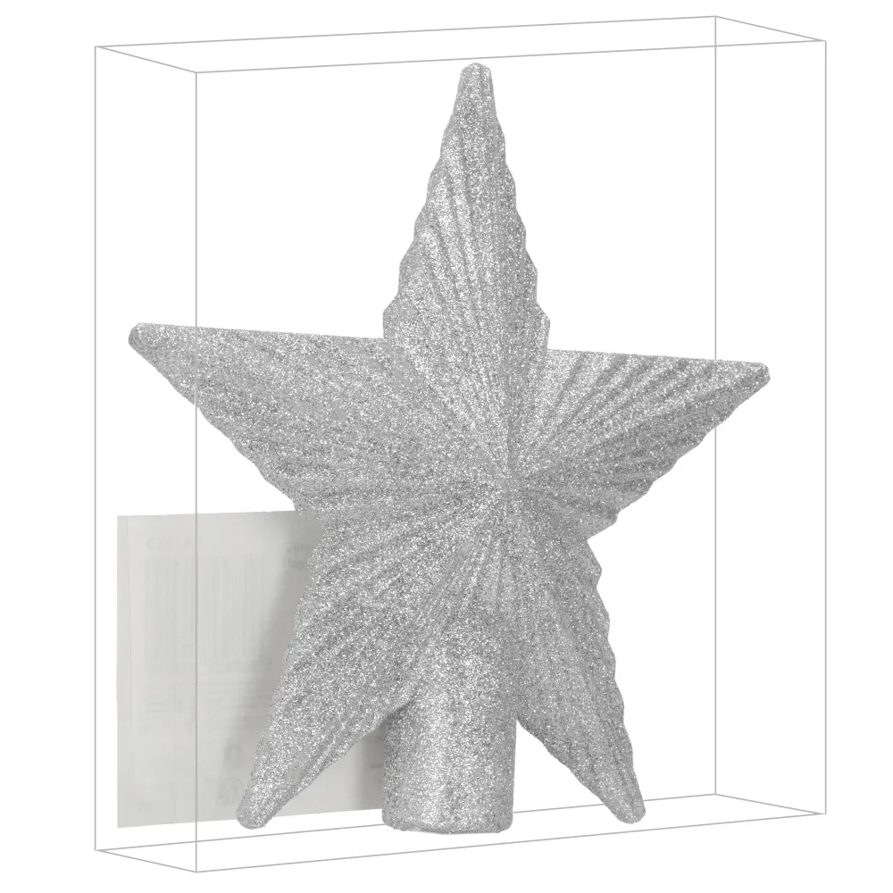 Hviezda na vianočný stromček 21 cm strieborná je elegantná a výrazná dekorácia, ktorá dokonale podčiarkne slávnostnú atmosféru Vianoc. Jej bohatý strieborný lesk krásne odráža svetlo, takže sa na špičke stromčeka stane neprehliadnuteľným prvkom. Vďaka ľahkej konštrukcii z nerozbitného plastového materiálu sa s ňou ľahko manipuluje a je bezpečná aj v domácnostiach s deťmi. Tradičný tvar hviezdy dodáva výzdobe symbolický a nadčasový vzhľad, ktorý sa hodí k moderným aj klasickým ozdobám.
