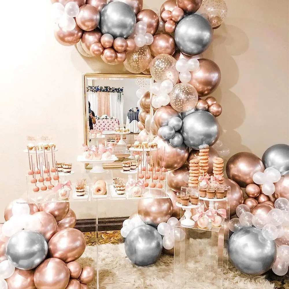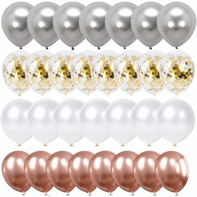 Farebná sada 50 latexových balónikov vytvorí krásnu a veselú výzdobu pre každú oslavu. Kombinácia metalických, bielych a priehľadných balónikov s konfetami dodá priestoru elegantný aj hravý vzhľad. Balóniky je možné nafúknuť až do výšky cca 40 cm a vďaka pestrému mixu odtieňov ľahko vytvoríte efektnú dekoráciu pre narodeniny, párty či sviatočné chvíle. Ideálna pre štýlovú a slávnostnú atmosféru.