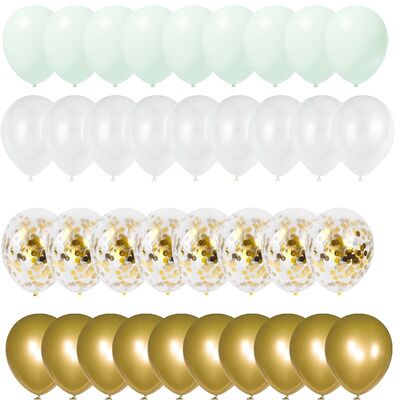 Sada 50 farebných balónikov premení každú oslavu na štýlovú a radostnú udalosť. Kombinácia mätových, bielych, zlatých a priehľadných balónikov s konfetami vytvára elegantný aj hravý efekt. Balóniky je možné nafúknuť až do výšky cca 40 cm a ľahko ich skombinujete do krásnych dekorácií pre narodeniny, párty či sviatočné stretnutie. Ideálna voľba na vytvorenie príjemnej slávnostnej atmosféry.