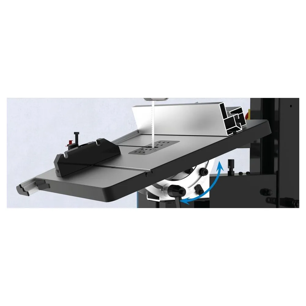 Pásová píla je presná, s nízkymi vibráciami a vhodná na jemné spracovanie dreva, tvrdého dreva, PVC (vyžaduje sa zvláštny pílový pás), hliníkových profilov (vyžaduje sa zvláštny pílový pás). Hliníkové kladky so špeciálnym pogumovaním zaisťujú dlhú životnosť pílového pásu. Hliníkový stôl výkyvný do 45 °, pevný oceľový podstavec, kovový kryt. Testované TÜV GS. Pozdĺžny a pokosový doraz. Prípojka pre odsávací systém s priemerom 49/75/100 mm. Pílový pás na drevo 1826x9,5x0,5x6Z".