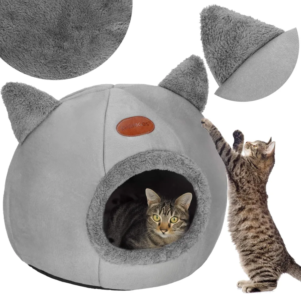 Domček pre mačku s ušami SPRINGOS PA0239 sivý