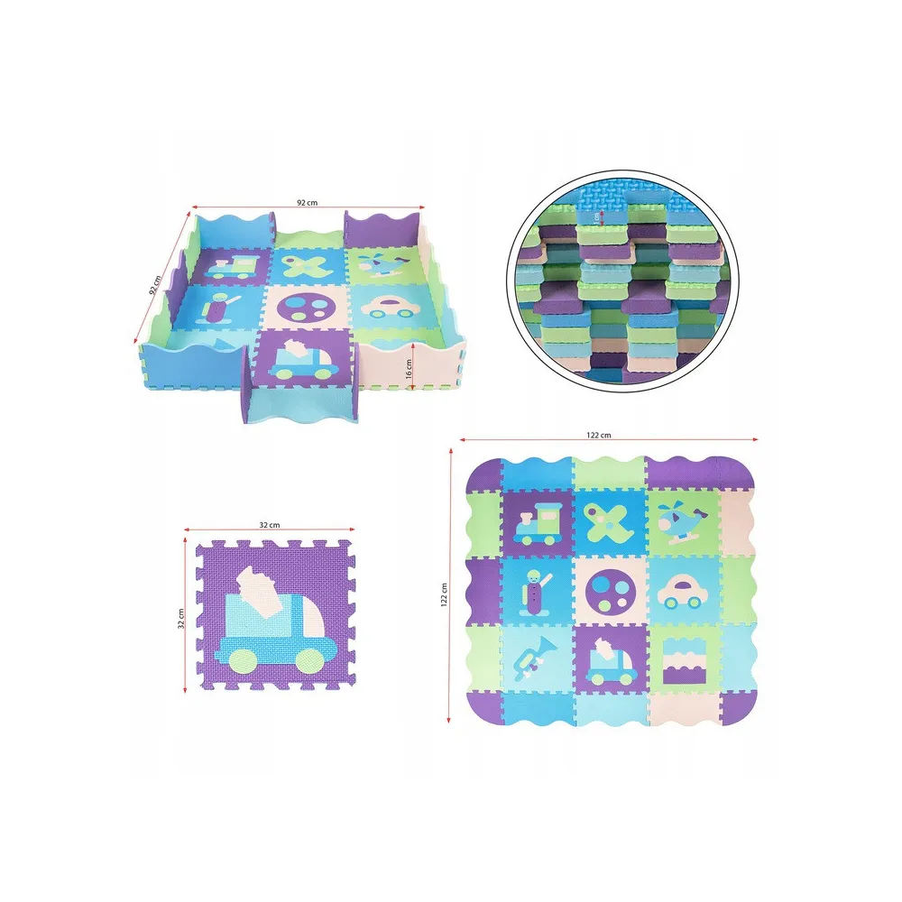 Zábavná hracia podložka s motívom dopravných prostriedkov , vhodná pre všetky zvedavé deti od veku 3 rokov. Podložka je vyrobená zo zdravotne nezávadnej EVA peny, je bez zápachu, nekĺže a má vysokú odolnosť voči vode a mechanickému poškodeniu.